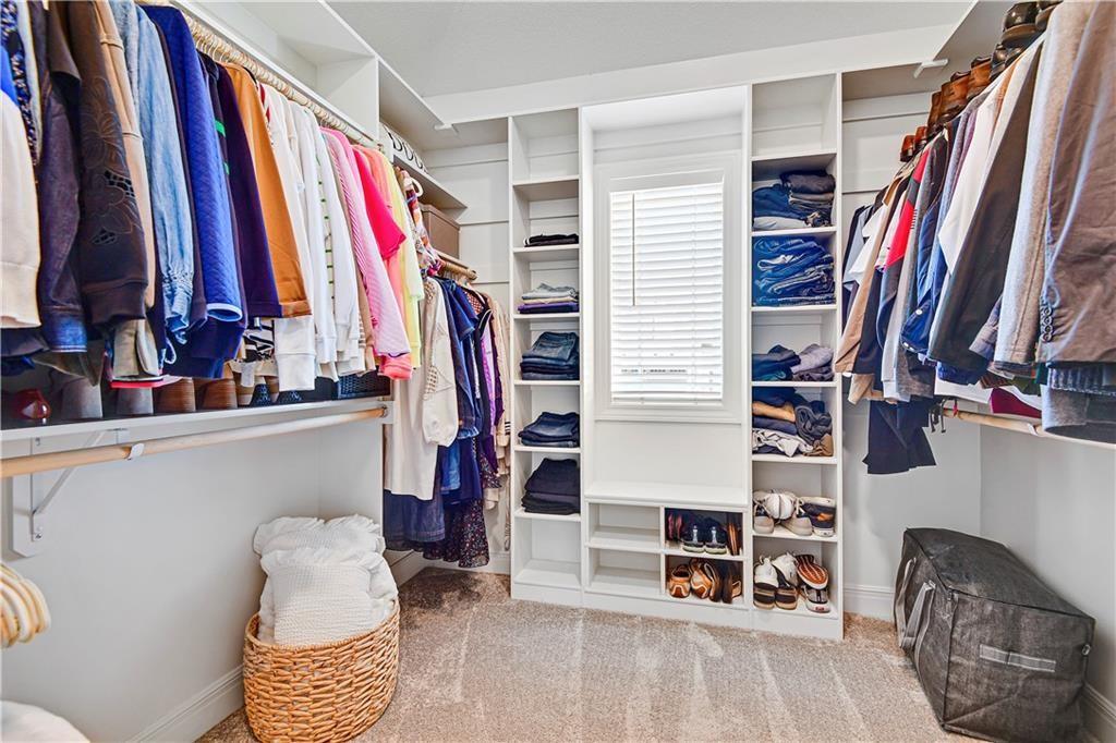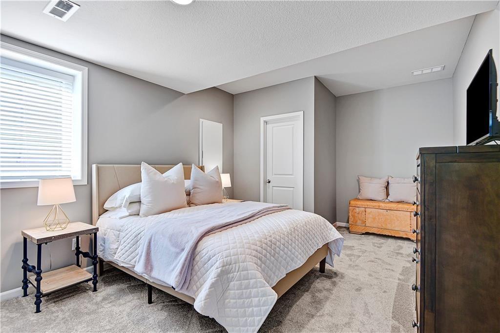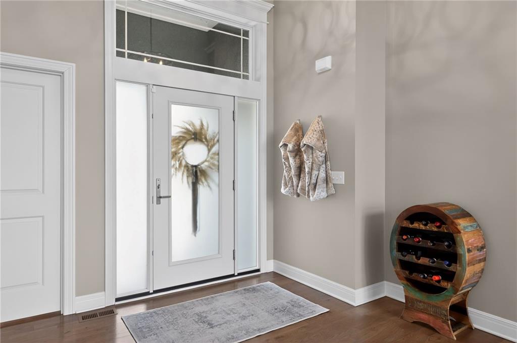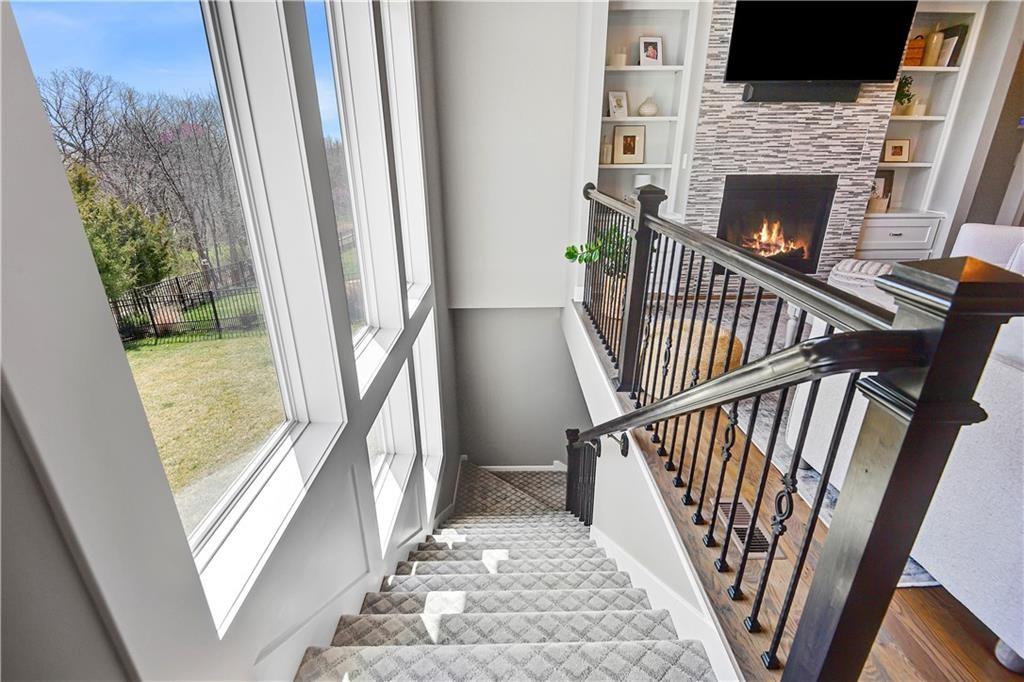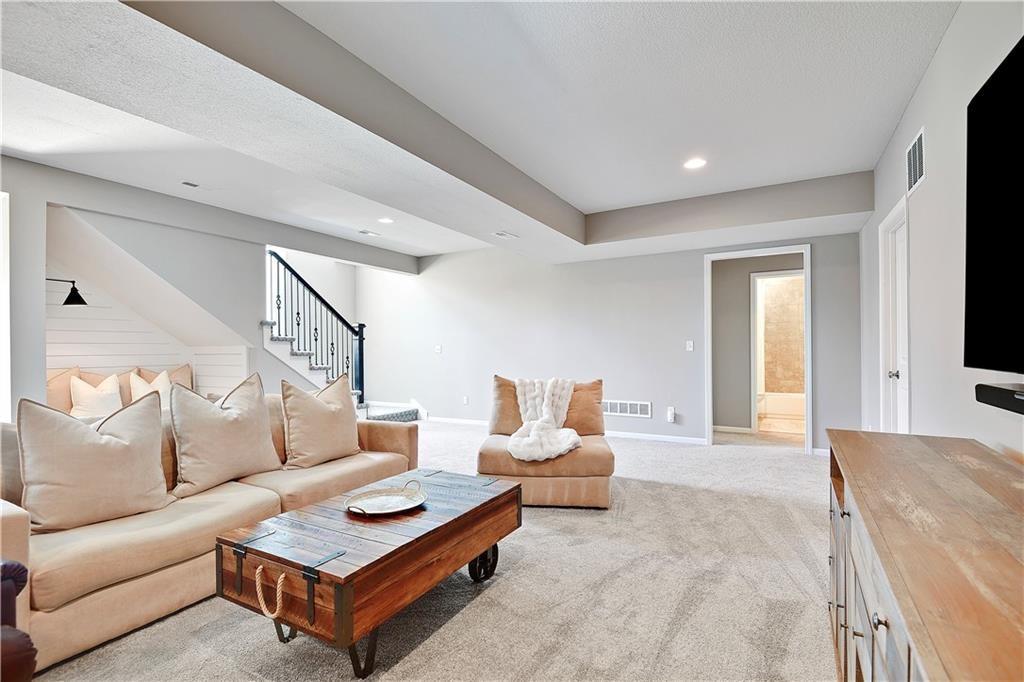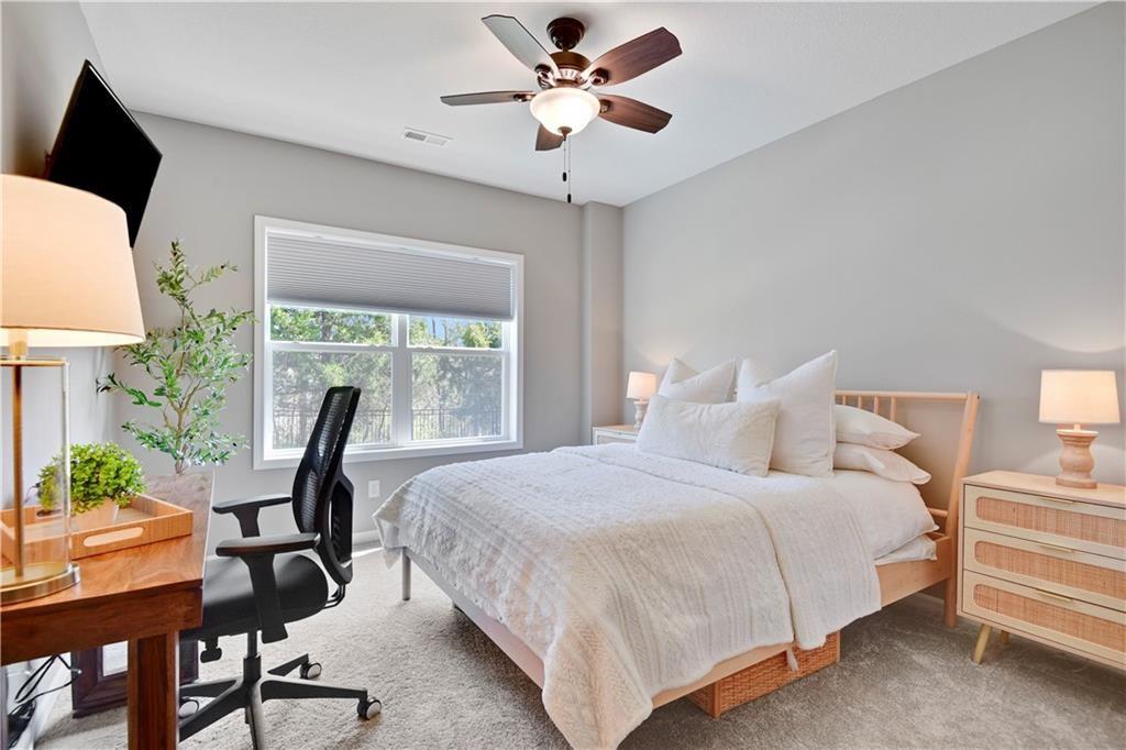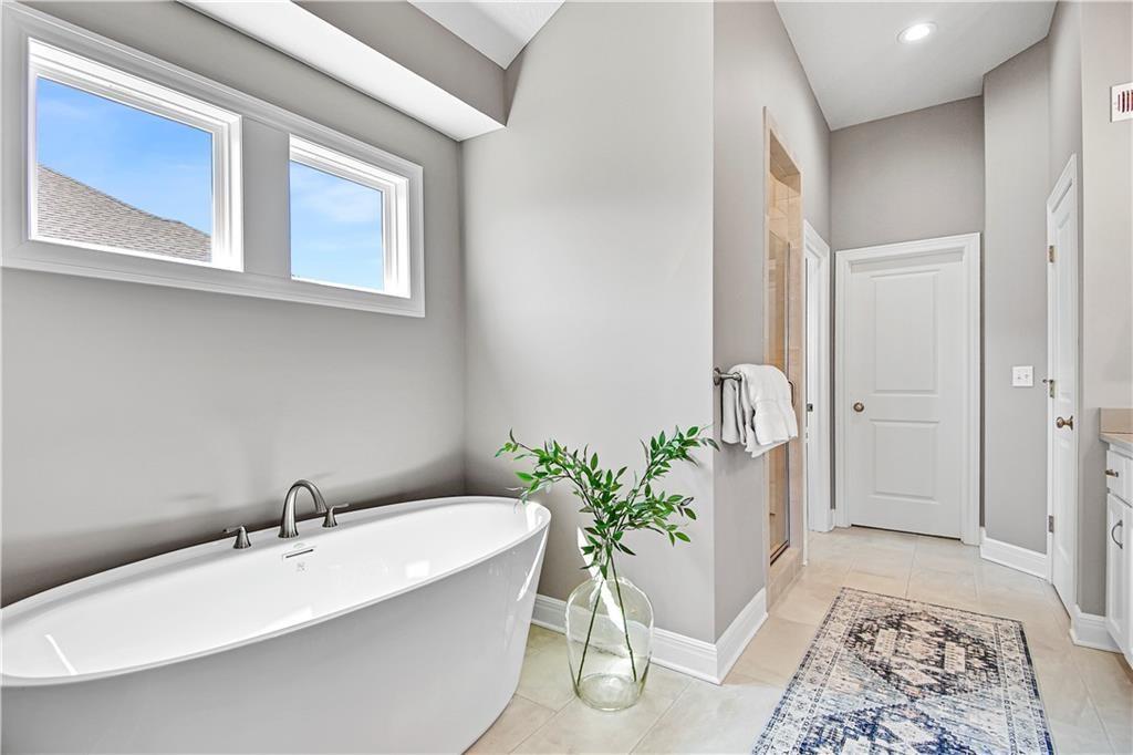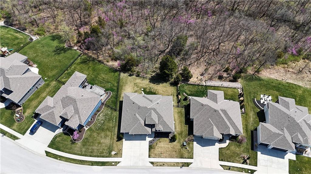 Stunning Reverse 1.5 Story in a fantastic neighborhood with fabulous amenities. This home backs to green space for privacy and views! Walk in to a wall of windows that take in the beautiful treed green space. There is an office or guest room at the front of the home and full bath. The primary bedroom is a delightful retreat with high ceilings & great views and a spacious and modern ensuite with separate tub & shower, double vanities & a huge walk-in closet. The kitchen is great for entertaining with an oversized island, neutral colors and classic design choices. You will fall in love with the covered deck that was greatly improved with an automatic, remote controlled MagnaTrack rolling screen that is engineered to withstand hurricane force winds and with the screen woven so tight it actually adds privacy (you can easily see out, but you can't see in), it blocks the sun, wind, bugs, and creates such a comfortable atmosphere that the sellers use that space year round. The walkout lower level has a wet bar area which makes the recreation room truly functional. There are two more guest rooms & a full bath and two separate storage areas. The back yard is fenced with iron fencing, so no maintenance, and strong enough to withstand a tree falling. It has 3 gates and is built in sections making it ideal for the long term. The garage floor has been epoxied. Integrated water softener system stays. Alarm system stays including window sensors. Interior freshly painted with highest grade of Sherwin Williams paint. Close to the pool & tennis, but very quiet street as there is not a lot of through traffic. Deck & railings were stained recently. All shower heads were replaced and kitchen faucet was replaced. Home has been professionally cleaned every 2 weeks and windows have been professionally cleaned inside and out every spring. Neighborhood amenities include multiple lakes/ponds with live fishing, hiking/biking trails, playgrounds, 2 pools, tennis & pickle ball court...