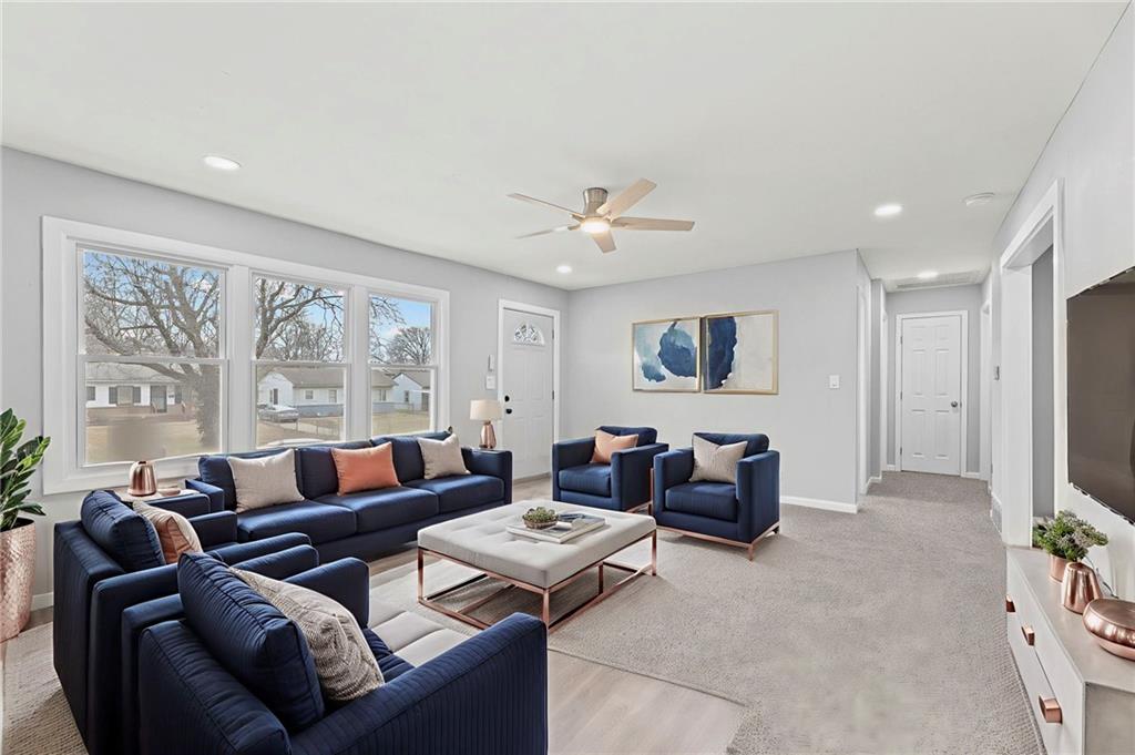 Completely renovated from top to bottom, this stunning Swope Park ranch is truly move-in ready with everything brand new throughout. Enter from the new front deck and you will see The beautifully redesigned kitchen features stylish shaker cabinetry, quartz countertops, and a custom tile backsplash, creating a modern and inviting space perfect for everyday living and entertaining. This spacious home offers an incredible layout with two large primary suites, each designed for comfort and privacy. You’ll also find four fully updated bathrooms, all showcasing contemporary finishes and thoughtful design. New luxury vinyl plank flooring, plush carpet, and fresh interior and exterior paint provide a clean, modern feel from the moment you walk in. The finished lower level expands your living space even further with a generous recreation room—ideal for game days, movie nights, or gatherings—plus an additional full bathroom for added convenience. With its extensive updates, flexible living spaces, and exceptional value for the price, this beautifully remodeled home offers an incredible amount of space and style in a prime Swope Park location.