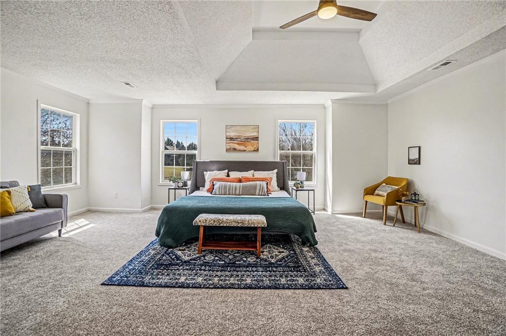 Fabulous in Falcon Ridge Meadows, this two story, three car, walk-out basement home has been exquisitely remodeled throughout and is what you have been waiting for! Step inside this gorgeous home and be greeted by a dramatic two-story open ceiling that instantly creates a bright, airy, and welcoming atmosphere. The entire interior has been thoughtfully updated with modern touches throughout including freshly refinished hardwoods the flow elegantly across the main level. The heart of the main level features a stunning gourmet kitchen with a custom tiled backsplash, high-grade quartz countertops and premium stainless steel appliances. It flows seamlessly into the dining area, all designed in an open-concept layout that overlooks the spacious living room with a cozy fireplace—perfect for relaxing and entertaining. A separate formal dining room provides additional flexibility for gatherings. Upstairs, the primary suite is truly impressive, offering a generous layout with a luxurious ensuite bathroom featuring custom tiled flooring and shower, plus a large walk-in closet. A junior suite with its own full ensuite bath provides comfortable private quarters, while two additional bedrooms share a convenient Jack-and-Jill bathroom. The finished lower level adds even more living space with a large family room, a second kitchenette, a full bathroom, and an additional bedroom—ideal for guests, extended family, or a private retreat. A convenient walk-out entrance leads directly to the backyard. Outside, a spacious deck is perfect for outdoor gatherings and grilling, flowing naturally into a generous backyard designed for play, relaxation, and all your favorite activities. This move-in-ready masterpiece combines modern elegance, thoughtful design, and versatile living spaces—ready for you to call home!