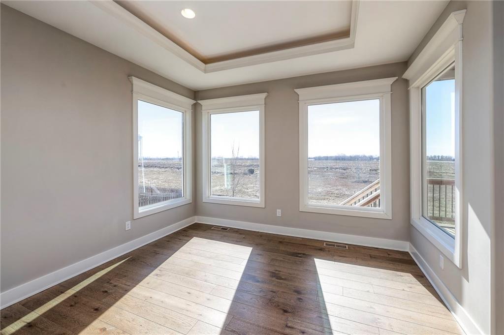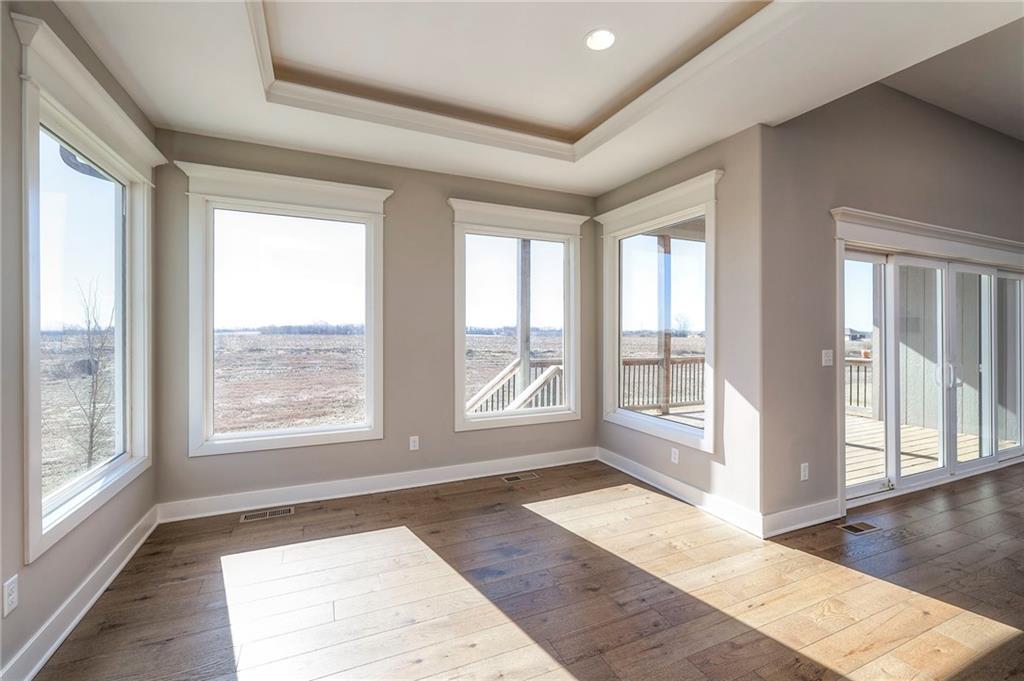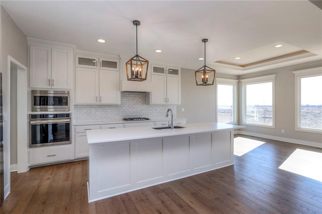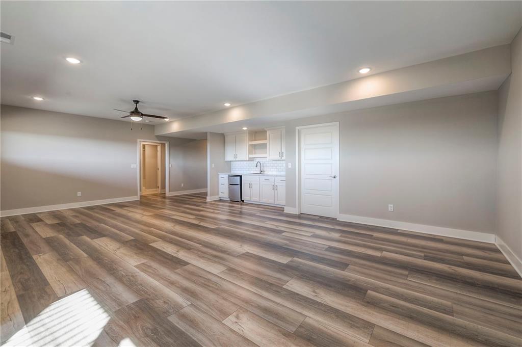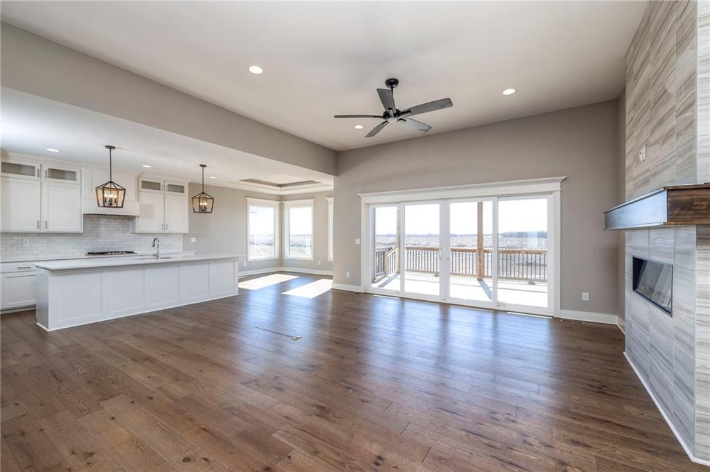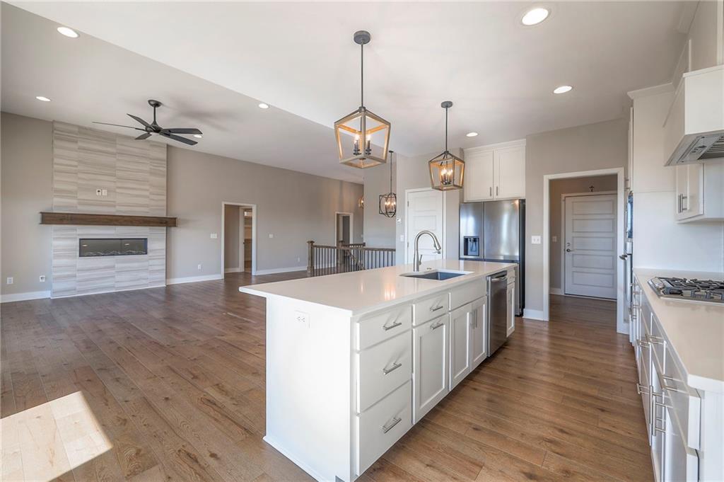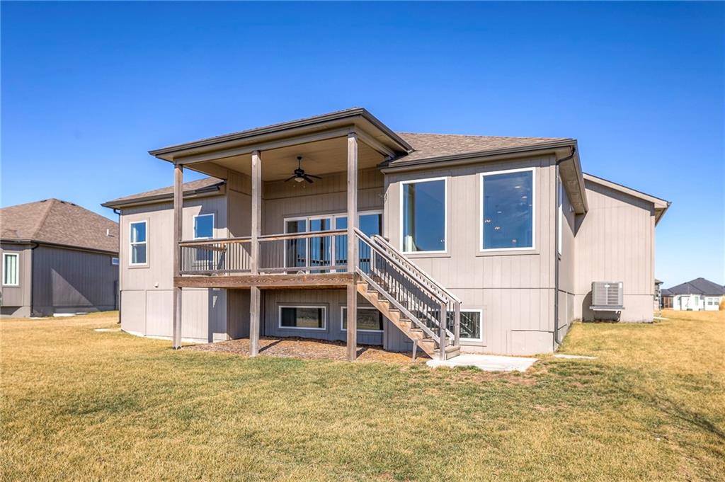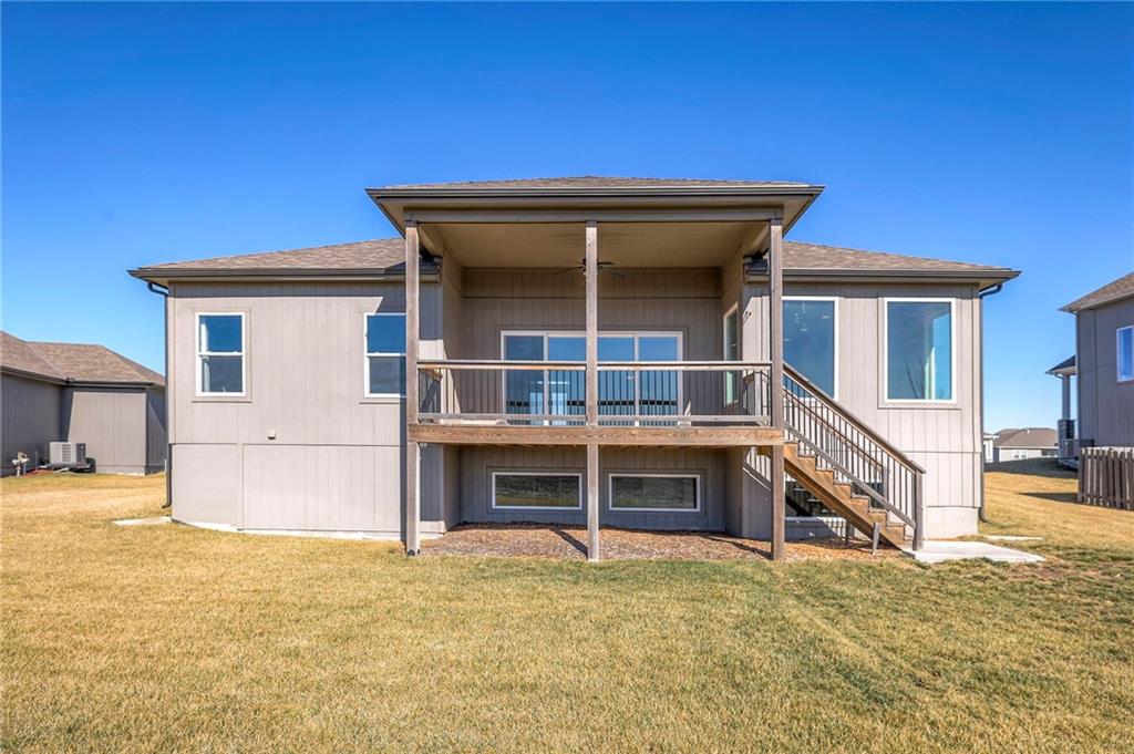 Beautifully maintained reverse 1.5-story home built in 2022 offering nearly 2,900 sq ft of thoughtfully designed living space. This 4-bedroom, 3-bath home features an open-concept main level filled with natural light, a spacious living area, and a well-appointed kitchen with large island, abundant cabinetry, hardwood floors throughout the main leveland adjoining dining area that walks out to a covered deck—perfect for relaxing or entertaining. The main-floor primary suite includes a private bath and generous closet space, along with a second office and convenient laundry for true main-level living. The finished lower level provides a large recreation room with wet bar, two additional bedrooms, laminate flooring and a full bath, plus large, oversized windows in the basement allowing for natural light. This home is located in a desirable neighborhood with quick access to shopping, dining, and major highways, this move-in-ready home offers modern finishes, functional layout, and excellent space for everyday living and gatherings.