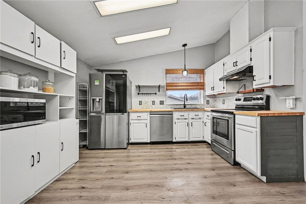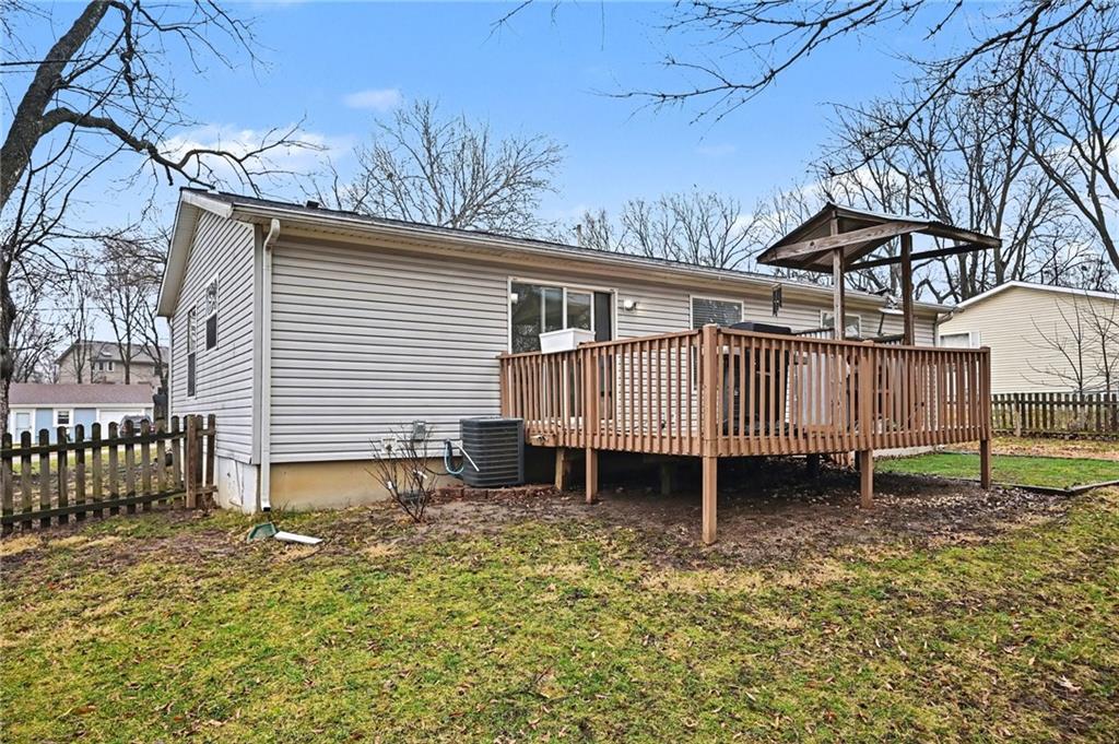 Welcome to 405 Wherritt Lane in Liberty, Missouri, a charming ranch style home tucked away on a quiet cul-de-sac in a friendly neighborhood with no HOA. With three bedrooms, two baths, and 1,260 square feet, this thoughtfully updated home is designed for comfortable, easy one-level living. Inside, the bright, open layout is enhanced by vaulted ceilings, new flooring, and abundant natural light. The updated eat-in kitchen features new appliances and charming farm-style touches. Just off the kitchen, a deck creates the perfect spot for outdoor dining or entertaining while overlooking the large backyard surrounded with beautiful, mature trees. The spacious living area flows easily through the home, where extra-wide door frames and hallways create a wheelchair-friendly layout that feels open and accessible. The main bathroom has been beautifully renovated with custom built-ins, pull-out storage, and a spa-like roll-in shower designed for both comfort and convenience. Outside, the oversized yard and flat driveway add to the home’s easy livability and provide plenty of room to relax, garden, or gather with friends and family. Located within the Glenaire city limits, residents benefit from Liberty Public Schools while paying only county taxes. The location also puts you just minutes from the shops, restaurants, and local charm of Historic Downtown Liberty, the scenic campus of William Jewell College, and outdoor recreation at Stocksdale Park, with convenient highway access for commuting throughout the Kansas City metro. Move-in ready and full of thoughtful updates, this Liberty ranch blends charm, functionality, and a location that makes everyday life feel easy. Be sure to check out the attached list of recent updates and improvements.