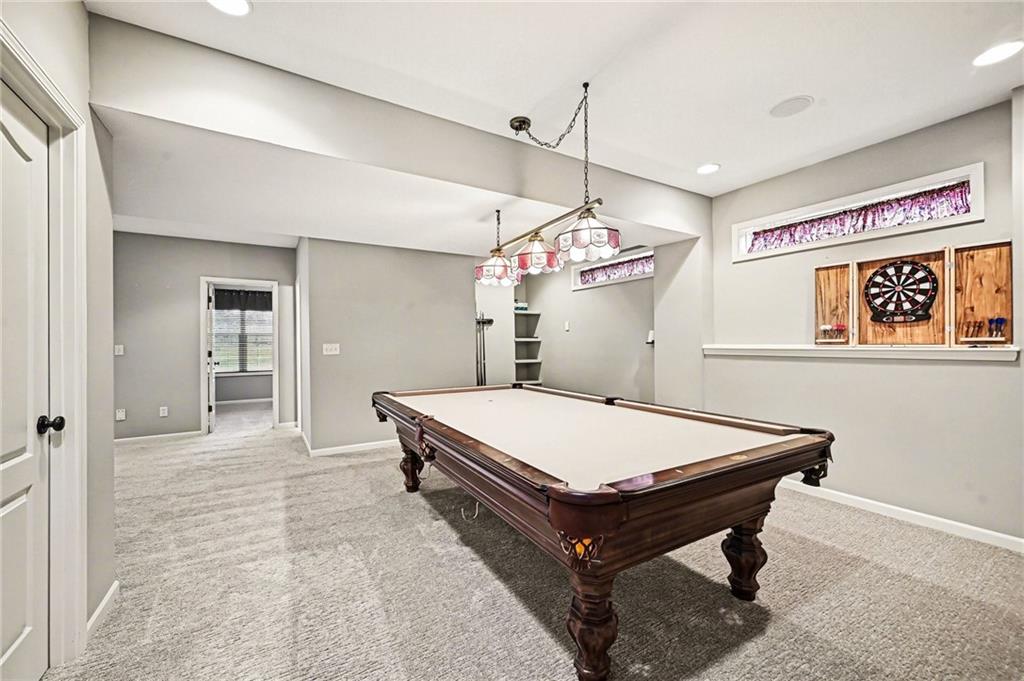 Located just minutes from Smithville Lake, walking trails, historic downtown, and the high school, this home offers both comfort and convenience. Do not miss this incredible opportunity. Upon entering this charming home, you are welcomed by beautiful wooden floors, vaulted ceilings, and an abundance of natural light from the large windows throughout the main floor. The dining room is filled with sunshine and features classic wainscoting along the walls. The living room offers a cozy gas fireplace and soaring ceilings, creating the perfect space for family gatherings or quiet nights in. The kitchen continues the classic wood style and is equipped with stainless steel appliances, a walk in pantry, and a breakfast nook with access to the screened in porch. The primary bedroom feels like its own private retreat with a spacious layout, plenty of windows, and a charming fireplace. The ensuite bathroom is truly a dream, featuring a jetted tub with a fireplace above, a large walk in shower, dual sinks with a makeup station between them, and a generous walk in closet. The remainder of the main floor includes two additional bedrooms, a full bathroom, and a conveniently located laundry room. Upstairs, you will find a large bedroom with recently updated flooring and a full bathroom. The walk out basement is designed for entertaining with a spacious recreation area, large windows, and a beautifully crafted wet bar. There is room for a pool table, craft space, and a gathering area, along with a dedicated exercise room, an additional bedroom, and a full bathroom. The basement walks out to a spacious backyard that backs to a small wooded area for added privacy.