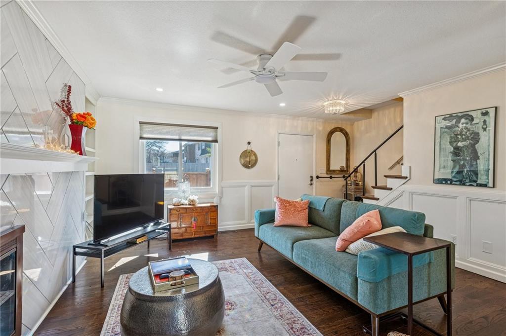 One of Greenbrier's most exquisite high-end remodels is once again available. Stunning $85,000 renovation (in 2019 Dollars) creating a beautiful one-of-a-kind masterpiece! One of the Larger 2BR floor plans in the neighborhood. An absolute Must-See property! Everything from the paver brick front courtyard patio with custom fencing and gate, the amazing job-finished REAL hardwood flooring, to the wainscoting and built-in bookcases, to the fully torn out and rebuilt custom staircase--now featuring lower-rise steps & wider treads inlaid with hardwood flooring. Walls blown out and kitchen opened up to create a dream kitchen with wonderful open floorplan including stainless steel appliances, sparkling quartz counters, custom cabinetry and even a pot filler! New half bath on main level as well. Upstairs you will find another gorgeous, remodeled bath, two very generous-sized bedrooms with able closet space + a large hall linen closet. The lower level features a ceramic tiled family room with access to the laundry, storage and single-car attached garage with private driveway behind. Fantastic subdivision with friendly neighbors of all ages and tons of activities! So close to all that downtown Overland Park offers, including the Kansas' #1-Rated "BEST" farmer's market current being re-constructed and expanded! You must see this wonderful home before it's too late!