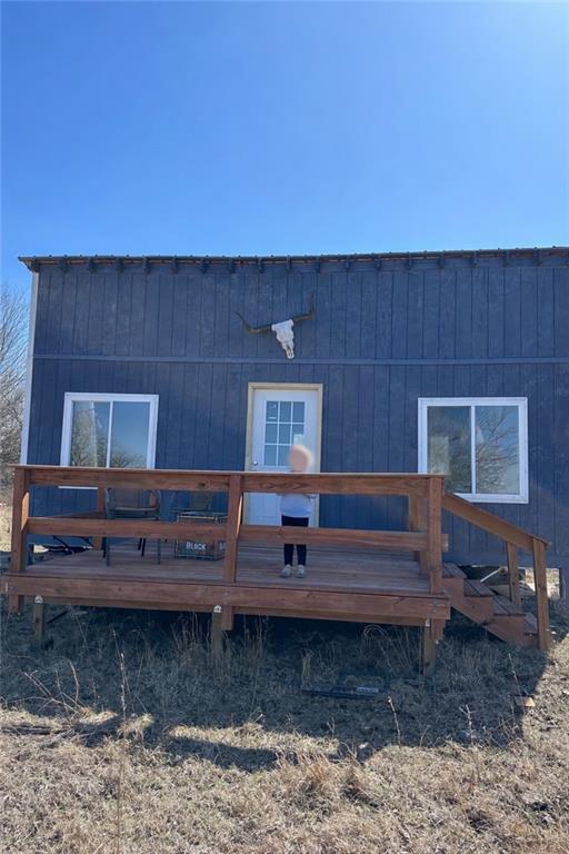 Spacious 60 acres m/l that lives larger than its size. Roughly two thirds of the land offers exceptional privacy, making it an ideal retreat. Features a starter cabin with a deck, ready for your finishing touches. Includes a pond, wet weather creek, and abundant wildlife such as deer, turkey, and a resident covey of quail. Set up for cattle with good grass and natural water sources. Less than an hour from South Kansas City, this property is perfect for rural living, hunting, or a working cattle operation.