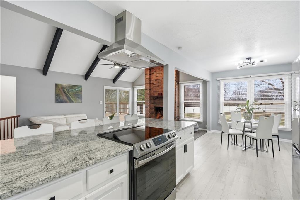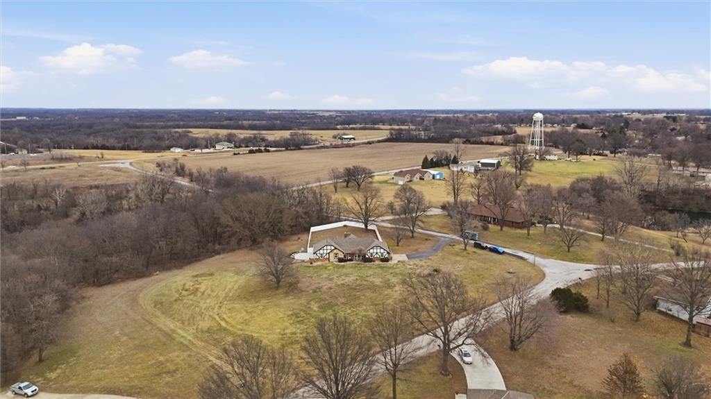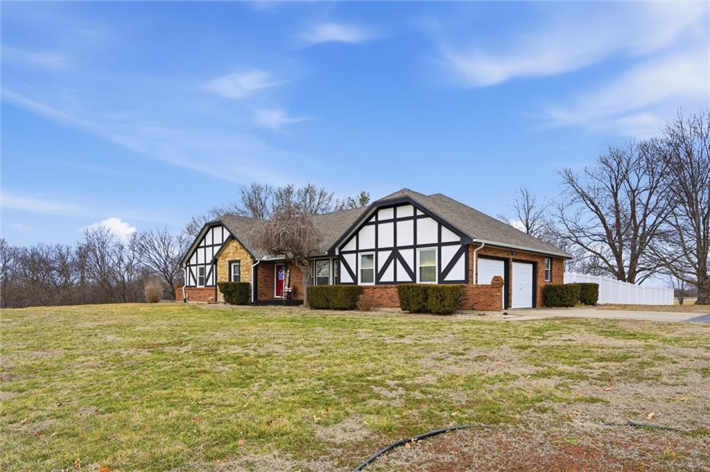 Discover your dream home on a 2-acre corner lot with gorgeous views and abundant wildlife. This meticulously remodeled 4-bedroom, 3-bath ranch home features a spacious 3-car garage and a host of modern upgrades. Enjoy effortless main-level living with an open-concept layout, formal dining, family room, home office, and a chef’s kitchen with granite counters, new appliances, and a large island. The primary suite includes double vanities and three closets. Cozy up by one of two brick fireplaces. The walkout basement offers a second family room with a fireplace, a non-conforming room, a full bath, a workshop area, and abundant storage. Recent updates include a 16x24 deck, fresh paint inside and out, updated furnace, A/C, water heater, humidifier, roof, guttering, and thermal windows. Enjoy the new (approximately $17,000) top-of-the-line fenced yard (lifetime warranty), perfect for pets, kids, or a future pool. All appliances stay, plus new attic insulation and a just-serviced septic system. Ideally located 3 miles from the Historic Shopping District and Elms Hotel, near golf, wineries, a community center, and in an AAA school district. KCI airport is just 45 minutes away. Don’t miss this move-in-ready opportunity; this one has it all!