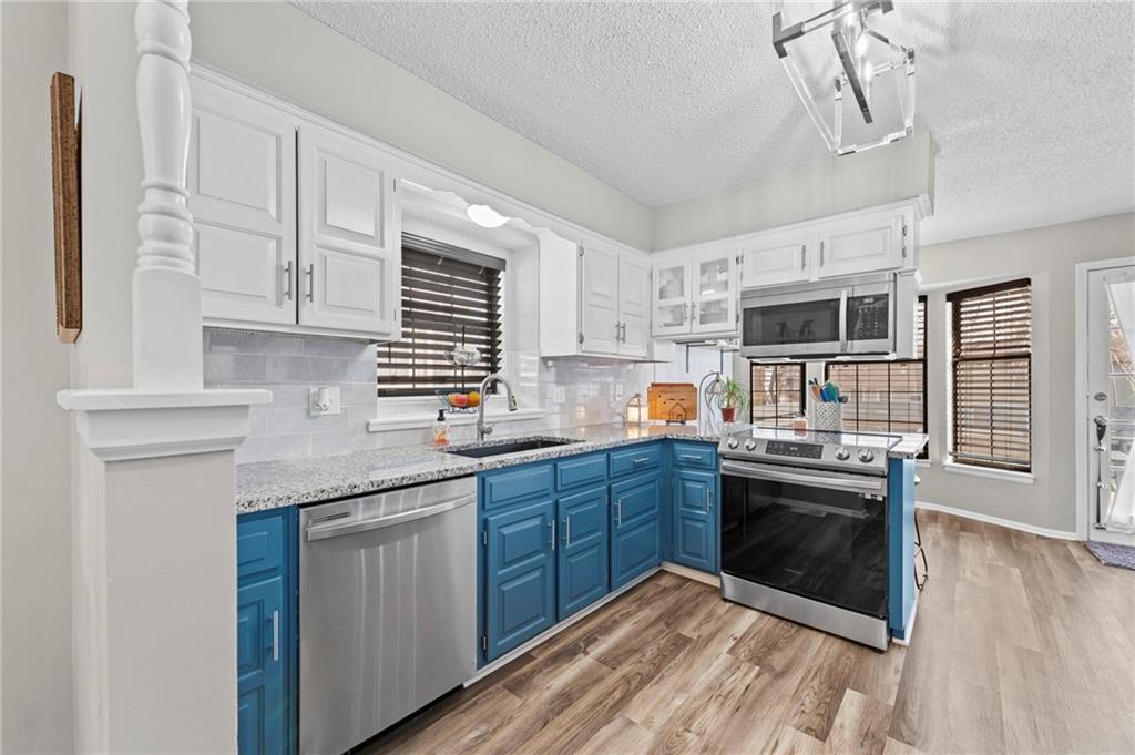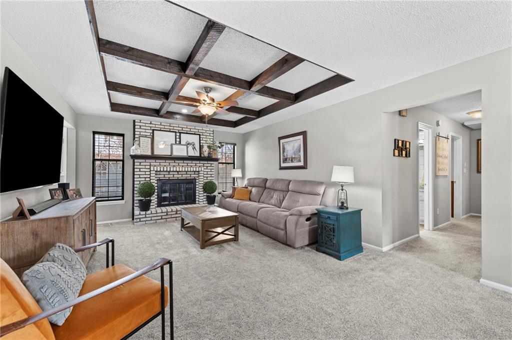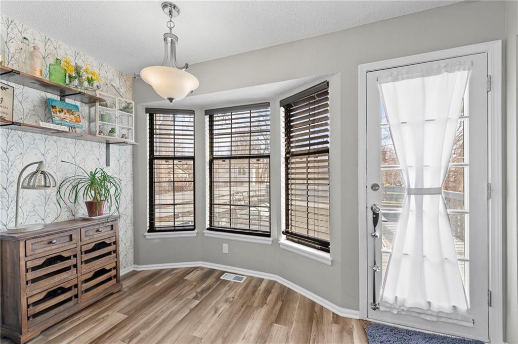One of the cutest homes in Vista Del Verde with so many great features! This home is updated in coveted black and white new exterior paint with curb appeal that pops! Come inside to a welcoming front nook to read a book or set up as the dogs favorite sun bathing spot. Enjoy the open dining/living room with a fireplace that sets the room drawing your eye to a contrasting ceiling. The kitchen is ready to host all of your cooking with granite countertops and stainless steel applicances that overlooks a breakfast nook with a bay window displaying a newly painted entertainment deck with storage below. There are also several interior storage areas including a converted bedroom closet, that can be converted back to a bedroom. Newer plush carpet throughout, luxury vinyl plank floors, large hall bath, downstairs rec room with wet-bar and walk-out, third full downstairs bathroom with separate laundry area, large deep two car garage, and covered back patio area are just a taste of what this home has to offer. Lastly the amazing location with great shopping, Lee's Summit schools, parks and highway access nearby. Schedule your showing today before it is gone!