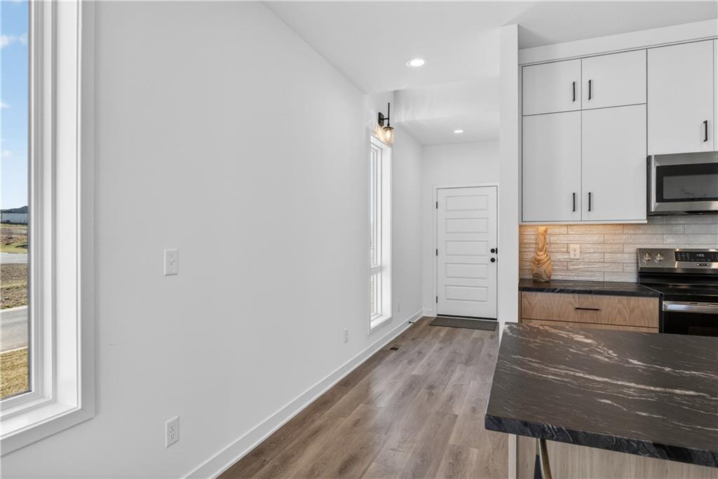 Discover refined, low-maintenance living at The Cliffs of Watercrest, where modern design and everyday convenience come together beautifully. This exclusive 1.5-story townhome blends contemporary style with functional comfort while offering a truly elevated lifestyle. Inside, soaring 20-foot ceilings and an open-concept layout create a bright, airy atmosphere filled with natural light. The spacious living area flows effortlessly into a functional luxury kitchen with premium finishes—perfect for hosting gatherings or enjoying a quiet evening at home. The main-level primary suite serves as a private retreat, featuring a spa-like bath with dual vanities and a generous walk-in closet and ensuite laundry. Upstairs, a versatile loft space leads to your own private rooftop terrace—an ideal setting for morning coffee, sunset views, or entertaining guests. Two additional large secondary suites each with their own walk-in closets ensures comfort and privacy for family or visitors. An unfinished walkout basement provides abundant storage and endless opportunities to customize the space to fit your needs. Ideally situated just minutes from premier shopping, dining, and major highways, The Cliffs of Watercrest offers the perfect balance of accessibility and upscale living. With low-maintenance services included, you can truly embrace a lock-and-leave lifestyle. ***Residents of the Cliffs also receive access to the amenities of WaterCrest Landing including the Pool, future Pickleball Courts and Play Area*** The Cliffs townhomes are also a perfect opportunity for investors looking to build their portfolio and take advantage of an exciting opportunity in a rapidly BOOMING area of Johnson County. Schedule your showing today!