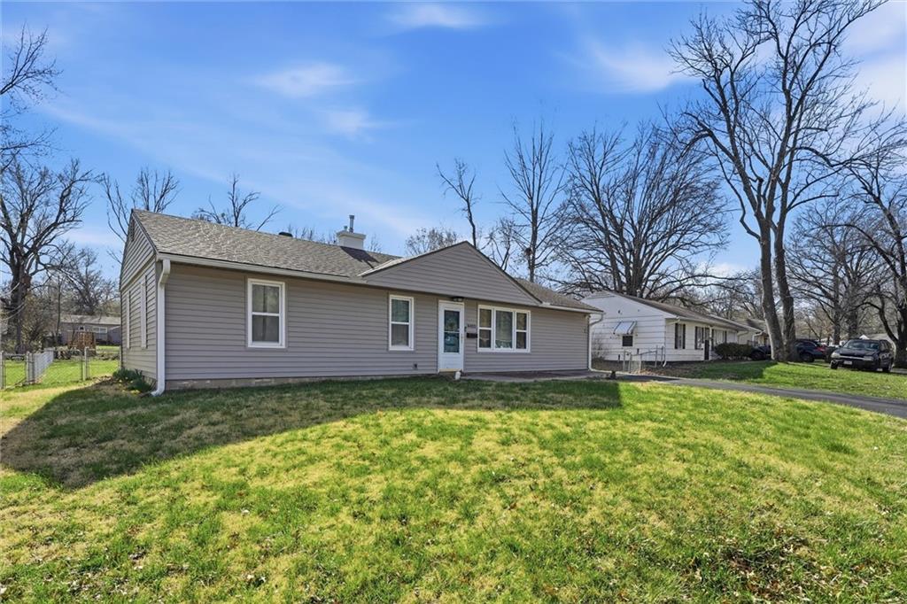 Fully updated ranch offering true main level living just minutes from Longview Lake. This four bedroom, one bathroom home features spacious bedrooms and an oversized bathroom with a comfortable and functional layout. The updated kitchen includes a walk in pantry and flows conveniently to the main level laundry room located just off the kitchen. Updates throughout the home include fresh paint, updated finishes, and thoughtful design from floor to ceiling creating a bright and inviting living space. Outside you will find a double driveway with a double gate leading to the backyard and an oversized detached garage featuring a heated shop complete with shelving, work benches, and ample workspace. The large fenced backyard offers additional outdoor living space with a gazebo and greenhouse already in place. A rare opportunity to own a move in ready ranch home with a workshop, outdoor amenities, and convenient access to Longview Lake, parks, and nearby conveniences.
