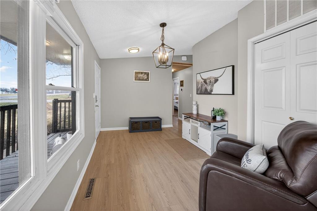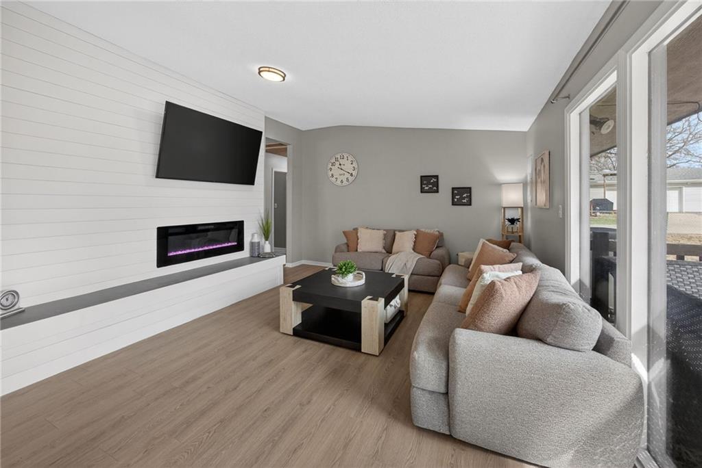 Welcome home to this adorable, move-in-ready ranch in Paola, perfectly situated on a beautiful .45-acre lot along charming Sunset Lane, where you’ll enjoy completely unobstructed sunset views putting on a gorgeous show every evening. This well-maintained 2-bedroom, 1-bath home offers easy main-level living with everything conveniently located on one floor. Inside, you’ll love the fresh updates including all NEW LVP flooring throughout and brand-NEW interior paint, creating a clean, modern feel from the moment you step in. The living room is brought together by a beautifully updated fireplace featuring freshly painted shiplap, a NEW electric fireplace insert, and a brand-NEW concrete hearth, a warm and stylish focal point for the space. Major improvements give peace of mind with a NEW HVAC system, NEW sewer line, NEW washer and dryer, updated appliances including a NEW refrigerator, and a NEWER roof (2022). SO MUCH NEW! Outside, the attached covered carport and double-wide driveway provide plenty of parking and everyday convenience. Cute, buttoned-up, and truly turnkey, this home offers the perfect blend of comfort, updates, and space to enjoy both indoors and out.