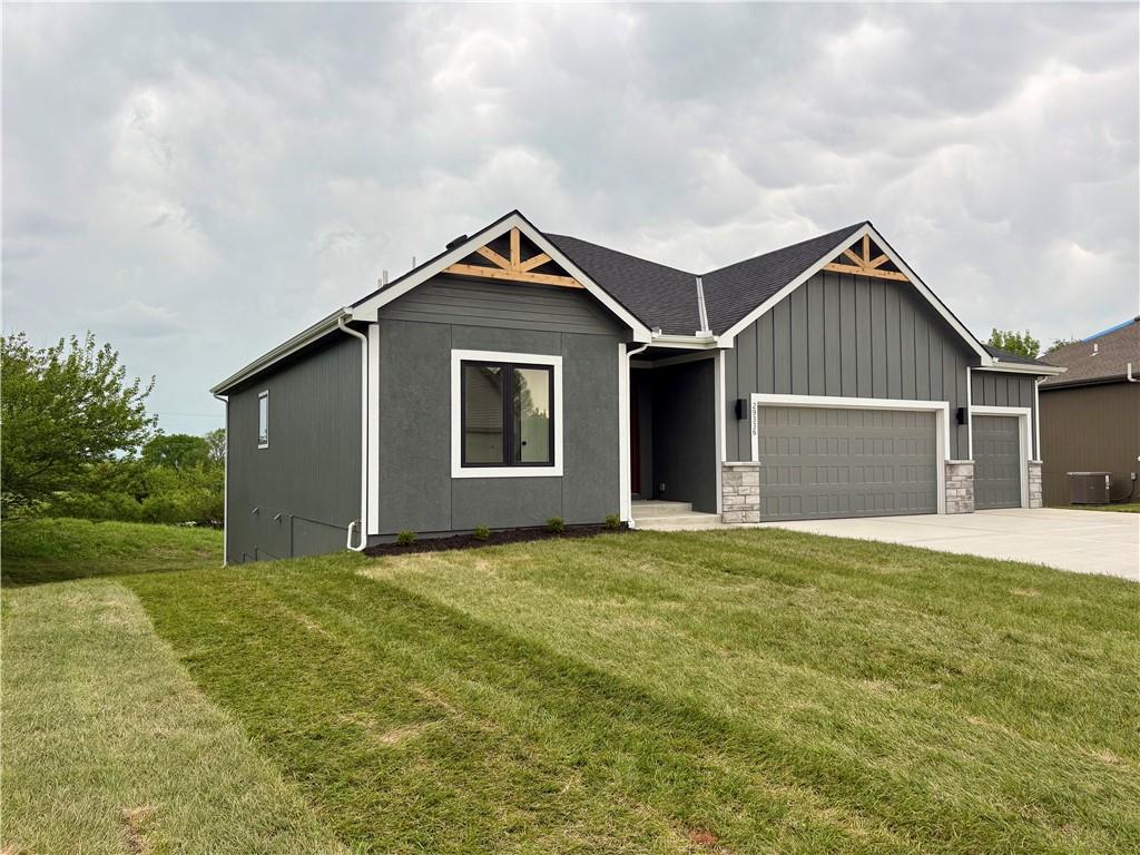 Beautiful new construction home located in the desirable Rockwood Estates is completed ! Conveniently situated just around the corner from the Paola Country Club, this thoughtfully designed home offers 4 bedrooms and 3 full bathrooms, with a spacious master suite located on the main floor. The open-concept layout seamlessly connects the kitchen and family room, creating the perfect space for entertaining and everyday living. The kitchen will feature granite countertops, and the bathrooms will showcase tiled finishes for a stylish, high-quality feel. The laundry room is ideally situated just off the master suite for added convenience. The finished daylight basement includes two additional bedrooms, a full bathroom, and plenty of space for guests, hobbies, or a second living area. A generous 3-car garage provides ample room for vehicles, storage, or a workshop. Enjoy modern comfort, functional design, and quality craftsmanship in this stunning new home in Rockwood Estates — a perfect place to call home!