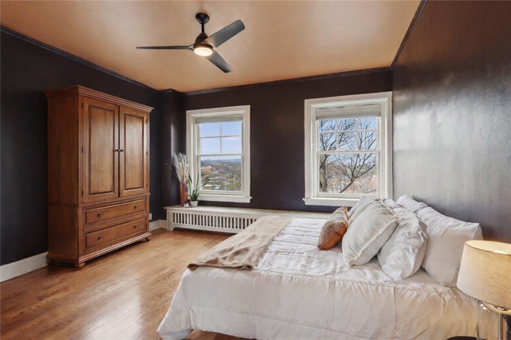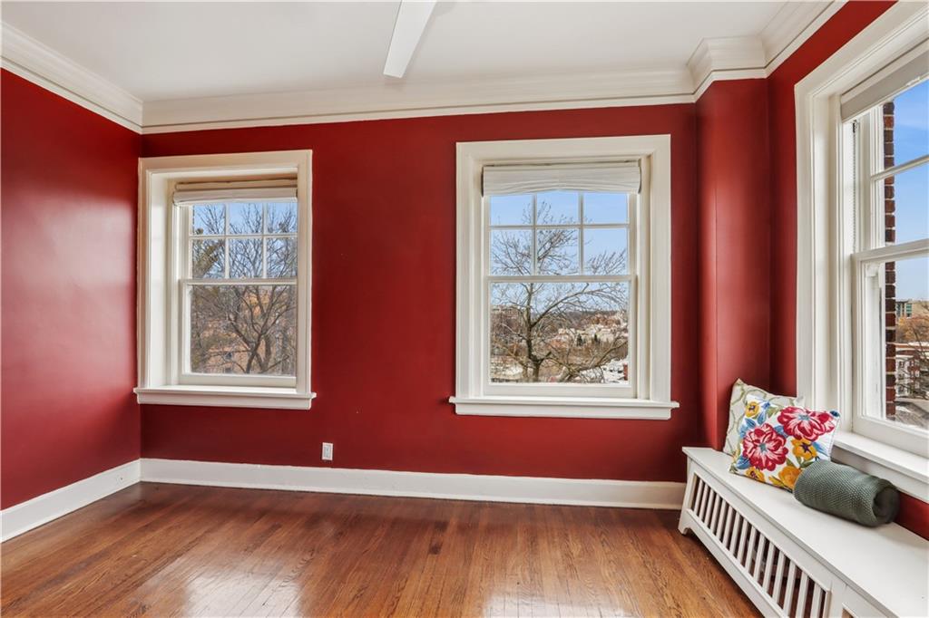 Fall in love with this beautifully updated 2-bedroom, 1-bath corner unit in the iconic Sophian Plaza. Flooded with natural light, this unit features rich hardwood floors, crown molding, and oversized windows with views in multiple directions. The updated kitchen is both stylish and functional, offering granite countertops, stainless appliances, a gas range, pantry, and spice cabinetry. Kitchen layout is open to the main living space, making it ideal for hosting or simply enjoying everyday life. The spacious primary bedroom is a wonderful retreat! Thoughtful touches like in-unit laundry and custom window treatments for convenience. Unlike many Plaza condos, the bedrooms are large enough to easily accommodate wardrobe pieces or armoires if someone wants additional closet space. Private basement storage included — perfect for seasonal items and extra belongings. Sophian residents enjoy a newly upgraded patio, private storage, secure exterior parking, and dues that include gas and water. Set in one of Kansas City’s most architecturally celebrated buildings, this location places you moments from the Country Club Plaza, Nelson-Atkins Museum of Art, parks, shopping, dining, and entertainment. If owning a piece of iconic architecture is on your bingo card for 2026, this one is worth it!