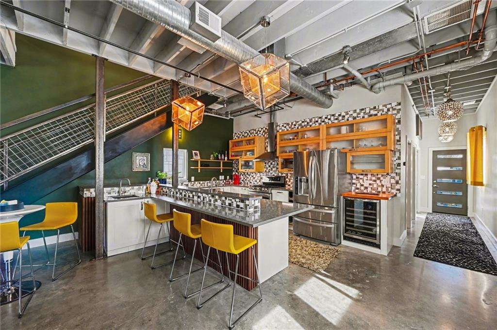 Step into modern sophistication with this one-of-a-kind custom contemporary 1.5 story home designed for those who appreciate bold architecture and refined industrial style. Upon entering, you’re greeted by soaring ceilings and expansive open spaces that create a dramatic yet inviting atmosphere filled with lots of natural light. Polished concrete floors flow throughout the main level, offering both durability and sleek, minimalist appeal. The open-concept layout seamlessly connects the living, dining, and kitchen areas—perfect for entertaining or everyday living. Overhead storage and exposed ductwork adds character and architectural interest, blending urban loft aesthetics with high-end custom design. The spacious kitchen features clean lines, premium finishes, and generous workspace, making it as functional as it is stylish. Upstairs, the thoughtfully designed second level provides privacy and comfort, with airy bedrooms all with new updated on-suite baths and generous closet space. Walk out onto your maintenance-free trex deck and expansive patio and enjoy your private yard. The oversized detached 2 car garage offers great additional storage space. Every detail of this home reflects intentional craftsmanship—from the industrial-inspired elements to the warm, modern finishes that balance edge with comfort elegance. If you’re seeking a distinctive property that stands apart from the ordinary, this custom contemporary home delivers unforgettable style and substance. Convenient Location in Valentine Area & Minutes to Downtown, Plaza and I-35.