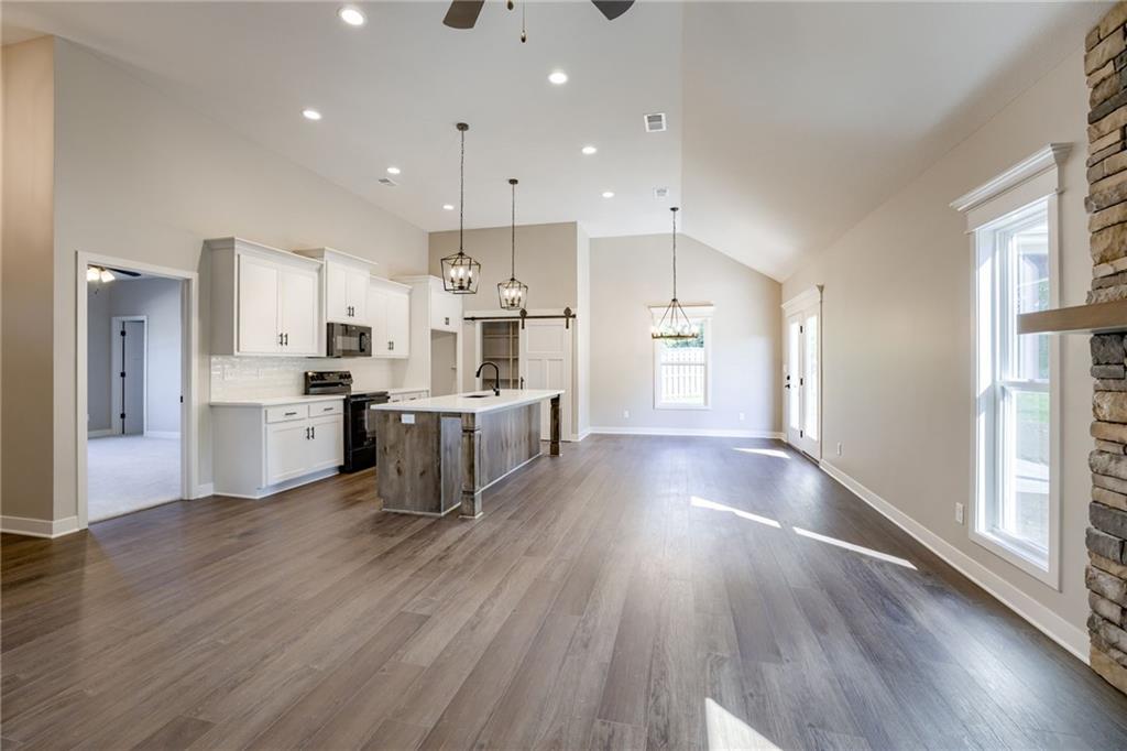 Brand new true ranch offers zero entry. No steps on main level! This open plan features high ceiling, fireplace, large stained kitchen island, custom cabinetry, pantry with barn door, quartz countertops and laundry room. Primary suite with walk-in closet. Double vanity and walk-in shower. Covered porch and patio. Unfinished walkout lower level. Located in a craftsman style neighborhood. AT FOUNDATION STAGE! Buyer can choose colors. House is located in an area that QUALIFIES FOR USDA HOME LOAN**0 MONEY DOWN FINANCING