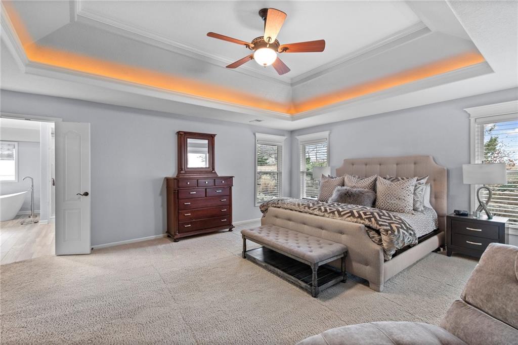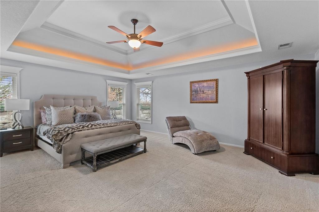 Prepare to fall in love with 14530 Grant Lane in the highly sought-after Windsor Hills neighborhood! A stunning retreat in the heart of Overland Park, KS! This 4-bedroom, 4.5-bathroom home effortlessly combines elegance and functionality, offering the perfect backdrop for modern living. Need extra flexibility? The main floor boasts a dedicated office that could easily transform into a 5th bedroom—ideal for guests or a growing household. Step inside to discover a spacious, open-concept living room bathed in natural light, with a large formal dining room at the entry plus a cozy dinette area. The kitchen is a chef's dream, featuring ample counter space, a generous walk-in pantry, and plenty of room to gather and create. Upstairs, convenience reigns with a second-floor laundry room, perfectly placed near the bedrooms. And the magic doesn’t stop there—venture downstairs to the expansive finished basement where endless opportunities await. This incredible space features a huge living room/entertainment area perfect for movie nights, game days, or hosting large gatherings. The built-in bar adds a touch of sophistication and makes entertaining a breeze, while the full bathroom ensures comfort and convenience for your guests. Whether you’re envisioning a cozy family retreat, a lively party space, or a home gym, this basement delivers in spades. Don’t overlook the outdoor sanctuary waiting just for you. The private backyard is a lush retreat, featuring beautiful landscaping that creates a peaceful oasis for relaxation or entertaining. Picture yourself enjoying morning coffee on the patio, hosting barbecues with friends, or simply unwinding amidst the greenery after a long day. To top it off, imagine waking up to serene views of the neighborhood’s large, tranquil pond just beyond your front door. This home offers the lifestyle you’ve been searching for: space, charm, and a location that can’t be beat. Schedule your tour today and discover the possibilities!