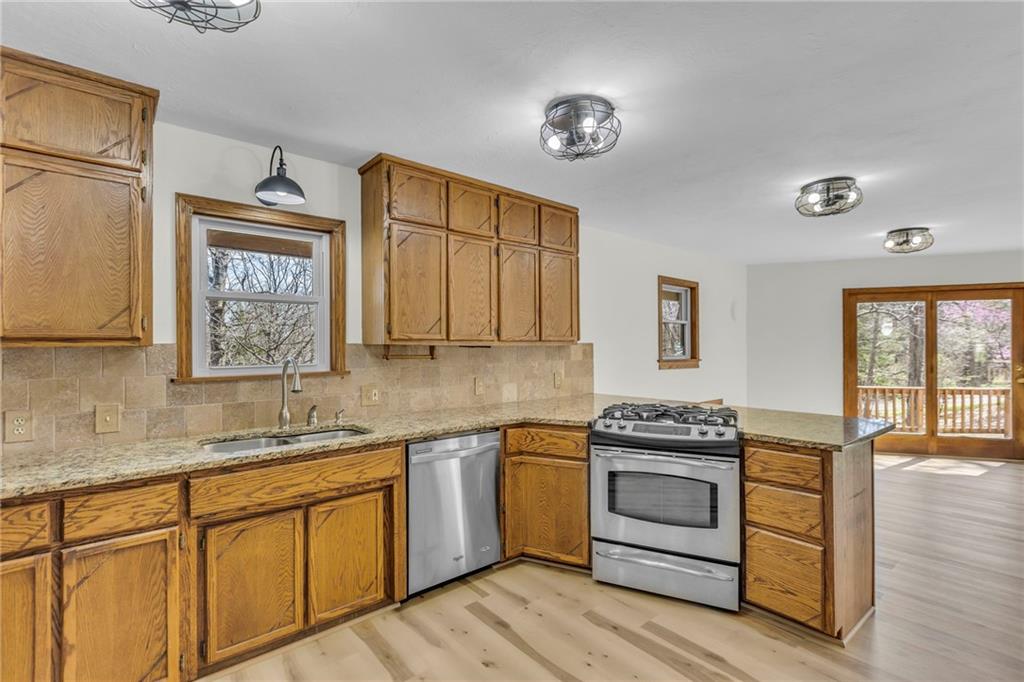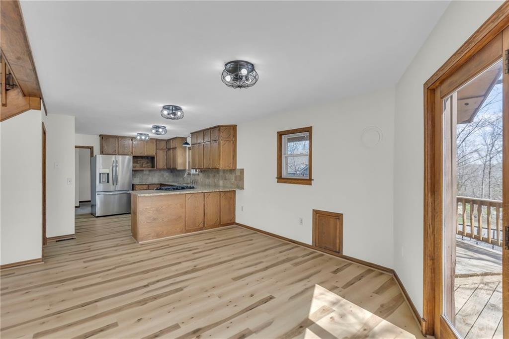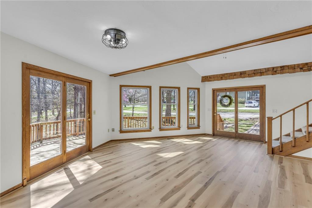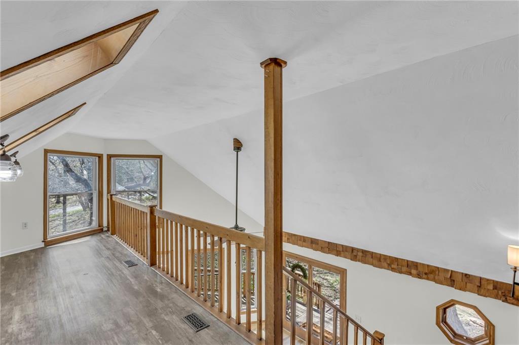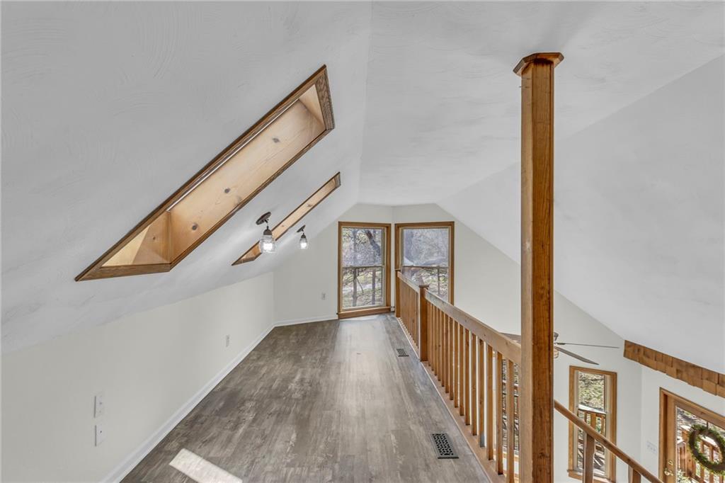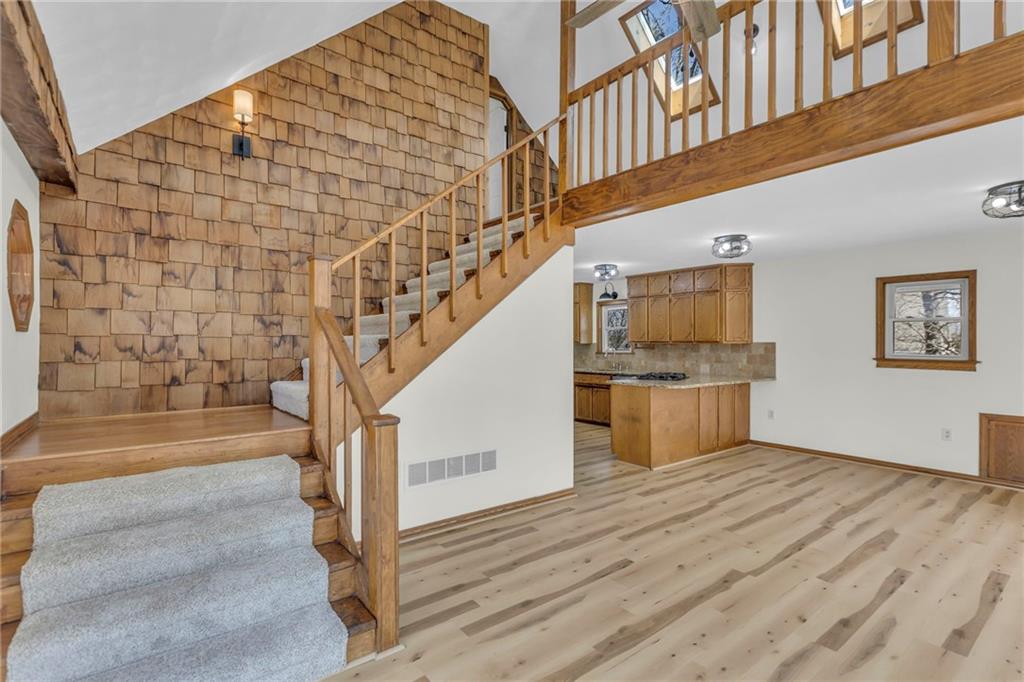 Living here is like always being on vacation! Welcome to this inviting home nestled on a partially wooded property off a paved, cul-de-sac road. It’s the perfect balance of privacy and community...you will never want to leave. This spacious floorplan welcomes you with a lodge-like setting, vaulted ceilings and skylights. You are going to love the beautiful new flooring, soft neutral paint throughout and new blinds (2025). The kitchen has newer granite countertops and stainless steel appliances. The primary bedroom has ample closet space, private bath, balcony overlooking the back yard, and loft that would be a perfect reading area or office space. The lower level has a lot of space, including a 5th non-conforming bedroom, second family room, and wet bar. Step outside to enjoy the new front porch that’s perfect for your morning cup of coffee or grilling with friends. (2026). The oversized two car garage can also double as extra storage or workshop. New garage door openers installed. (2025) Be sure to check out the shed with a children's play house on the second story.