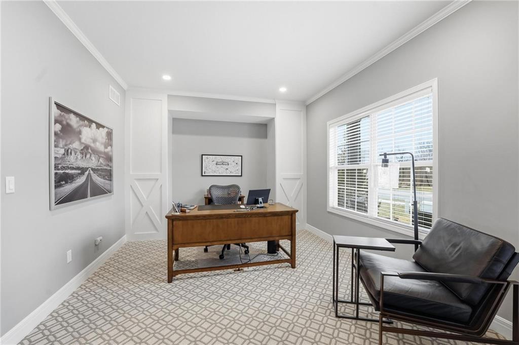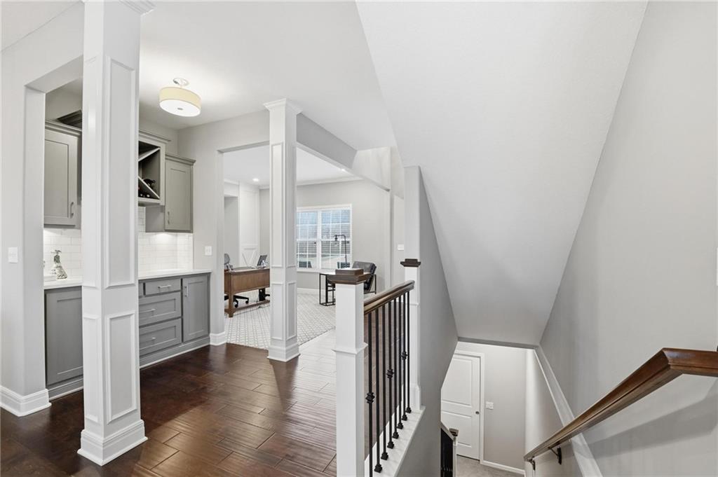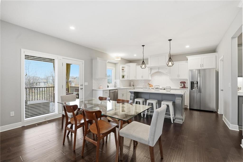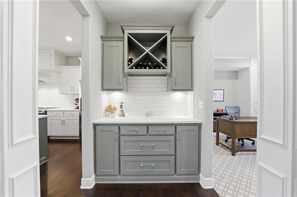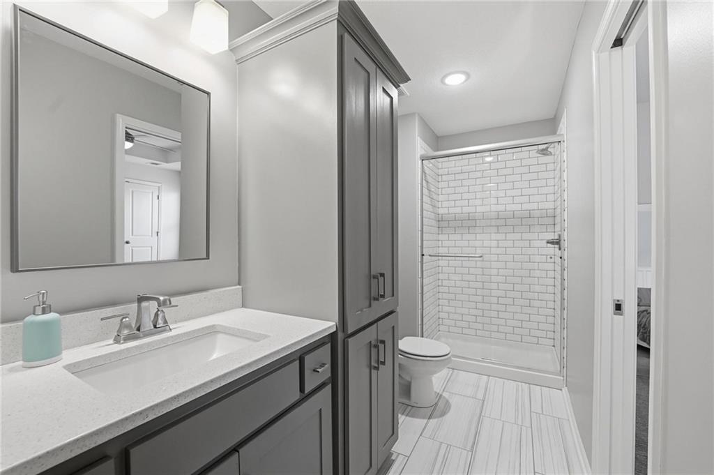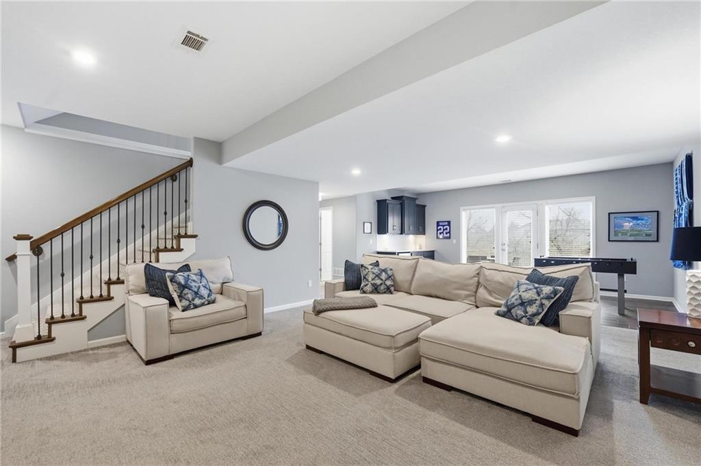 Better than new and thoughtfully designed, this beautiful 2-story home in the desirable Chapel Ridge subdivision offers space, comfort, and scenic views. From the moment you enter, you’re welcomed by a formal dining area perfect for gatherings and special occasions. Just beyond, a convenient butler’s pantry leads into the light-filled kitchen featuring quartz countertops, a large center island, pantry, and plenty of workspace. The adjoining breakfast area provides a comfortable spot for everyday dining. Step outside to enjoy the covered, screened-in Trex deck with sleek metal railings—designed for low-maintenance living—overlooking the fenced backyard and peaceful pond view. The kitchen and breakfast area open seamlessly to the inviting family room, highlighted by a stunning stone fireplace with built-in shelving and cabinetry. All four bedrooms are located on the second floor, each generously sized with ample closet space and direct access to a full bathroom. The oversized primary suite offers a relaxing retreat with double vanities, a jetted tub, dual-headed shower with bench, and a spacious walk-in closet with convenient access to the laundry room. The finished basement expands the living space with a comfortable living area, dry bar, room for game tables, a full bathroom, and a storm shelter, along with abundant storage. With beautiful finishes, functional design, and tranquil pond views, this home truly offers the best of modern living in Chapel Ridge.