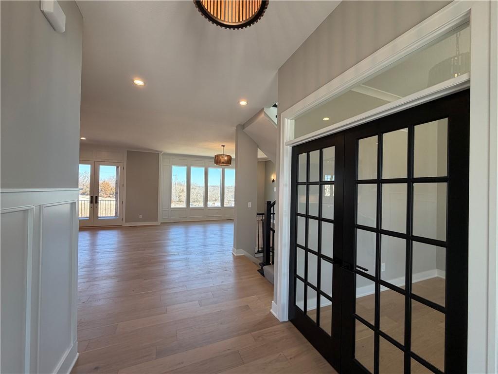 Located in the sought-after Watercrest Landing community, this stunning Makenna model home showcases exceptional design, craftsmanship, and custom detail throughout. Thoughtfully curated with designer décor and high-end finishes, this home sets the standard for modern luxury living in Lenexa. The main level features an open-concept layout with 10-foot ceilings, seamlessly connecting the kitchen, breakfast area, and great room—ideal for both everyday living and entertaining. Just off the entry, a private home office with French doors and built-in bookshelves offers a stylish and functional workspace. Upstairs, the expansive primary suite is a true retreat, complete with a private sitting room perfect for relaxing. The spa-inspired primary bathroom impresses with three shower heads, a freestanding soaking tub, and an oversized walk-in closet. Convenient second-floor laundry is located just steps from the primary suite. Outdoor living shines with a covered deck overlooking green space and beautiful lake Lenexa and Blackhoof Park creating the perfect setting for entertaining or unwinding year-round. With 4 bedrooms, 3.5 bathrooms, and an abundance of custom features throughout, this exceptional model home exemplifies the elevated lifestyle offered in one of Lenexa’s premier communities. A true must-see showcase of design and innovation.