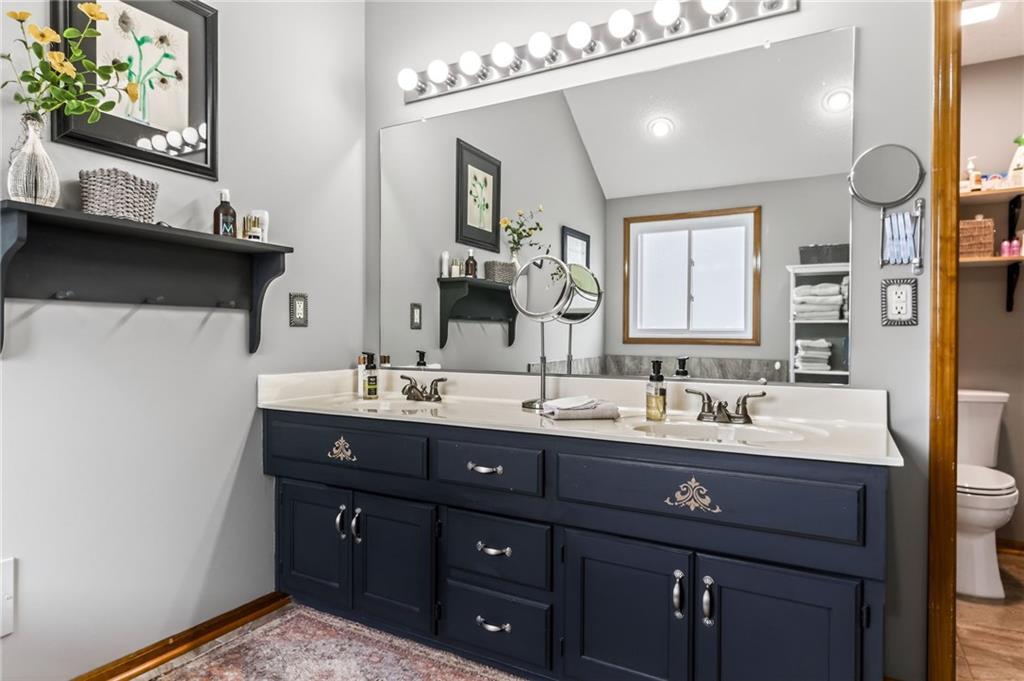 The charming curb appeal and front porch draw you in to this meticulously maintained 3 bedroom, 2 bath California split. This popular floorplan has a spacious living room with a fireplace and vaulted ceiling. The open kitchen, with lots of cabinets, hardwood floors and dining area, overlooks the living room. The oversized primary suite has a walk-in closet, a double vanity and jacuzzi tub in the bathroom. Two more bedrooms, a hall bath and hall laundry room are on the kitchen dining level. The deck overlooks a large flat backyard with beautiful landscaping. There is LOTS of storage space in the unfinished walkout basement that can be finished for more living space. Rest at ease knowing the major items have recently been replaced. This home is located close to schools, parks, restaurants and shopping.