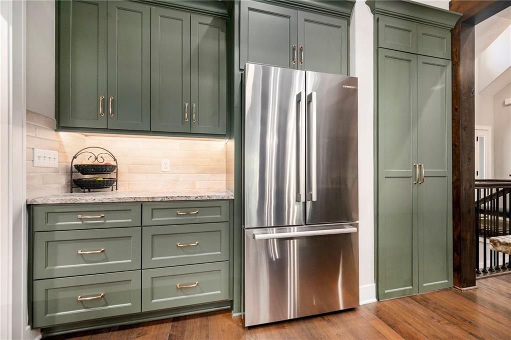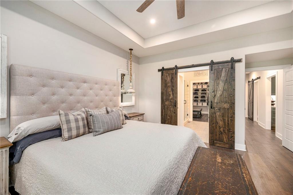 ONLY 4 YEARS NEW! Price lowered from $725,000 to $710,000! TOO MANY upgrades to list, see Upgrades and Amenities Sheet and Receipts under Supplements. NO DOGS OR ANIMALS, NO SMOKING. Better than New Reverse 1.5 Story Walkout with 5 bedroom, plus a lower level office or workout room on a 1.01 acre lot. Oversized kitchen cabinets with spice drawers and various pullouts, HUGE, Tall walk-in Kitchen Pantry. Upgraded granite countertops in kitchen, 3 bedrooms on main floor and 2 Bedrooms upstairs bathrooms. Master Bedroom has vaulted ceiling and fantastic view of greenspace overlooking 1.1 acre. Master Bathroom has a large shower with 2 Rainforest Shower Heads, vanity and makeup area. 24 ft deep 3-car Garage. MULTIGENERATIONAL: Lower Level has HEATED ceramic Floors in Kitchen and Dining area! Could be an apartment with separate entry someone could live in with beverage & wine fridge that stays, dishwasher too. LL Custom Cabinets and Cabinetry. Workout room, 2 bedrooms and full hall bath with tub over whirlpool jetted tub. Upgraded stair carpet. Upgraded OUTSIDE PUCK LIGHTING that you can turn various colors. CIRCLE DRIVEWAY!! Extra Height on vaulted living room and kitchen with floor to ceiling fireplace and bookshelves/cabinets. Garage: Smart Garage Door Openers, Enlarged to 33 ft wide x 22 ft deep. 2 hard wired cameras in front. Blink Doorbell, fingerprint front door lock. Peaceful and serene, Close enough to downtown Oak Grove while being surrounded by green oasis backing to GREENSPACE. 10 min to Blue Springs…close to Lee's Summit, downtown and I-70. There is room to put an outbuilding, but it has to match the exterior of the house.