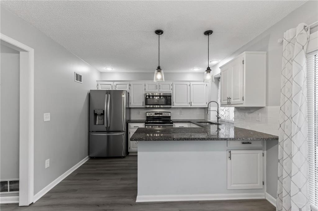 A complete package, easy to own. Recent LVP for the main floor with the kitchen upgrade. Also updated: stair carpet, repaint, and master bathroom. Main level with elegant vaulted ceilings and a classic hearth design. Ample windows in the front wall light the living room naturally. New cabinets, backsplash and countertops complete the kitchen. Main level laundry.