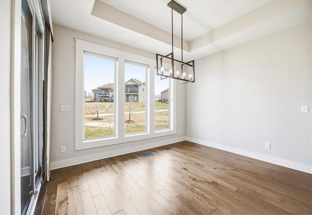 Welcome to this amazing Villa, "Bayberry" by JFE. This is a 4 bedroom 3 bath with a nonconforming 5th bedroom in the basement. Gleaming hardwoods, custom cabinetry, large kitchen island with granite, floor to ceiling windows, soaring ceiling heights makes this home feel luxurious. Finished lower level with family room, 2 additional bedrooms and a 3rd nonconforming bedroom plus a full bath gives you another living space. Enjoy relaxing on your covered patio looking out at green space. Come out and see this maintenance free villa community. Great location - shopping, restaurants & walking trails nearby.