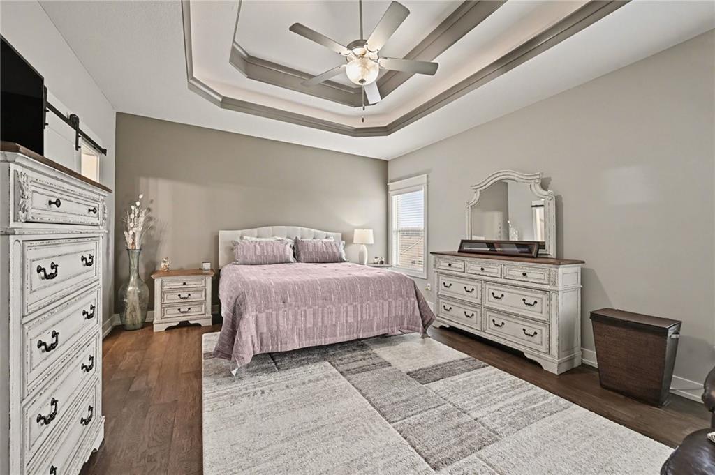 The covered front porch welcomes you home and invites you to slow down while sipping your morning coffee or enjoying a quiet evening sunset. Step inside and you’ll find a newer build designed for both everyday living and easy entertaining. The open-concept great room feels bright and welcoming, with a stone corner fireplace and a stunning quartz island that anchors the kitchen as its natural gathering place. A spacious corner walk-in pantry keeps everything tucked neatly away, while thoughtful finishes elevate the space from functional to beautiful. A smart and versatile layout elevates this home above the typical. The primary suite, laundry room, guest bedroom, and a dedicated office—offset with French doors—are all conveniently located on the main level, creating a floor plan that adapts seamlessly to work, rest, and hosting. Throughout the home, granite countertops, thoughtfully selected tile, and engineered hardwood flooring add layers of texture and timeless style. Downstairs, the family room and expanded bar area create the ultimate hangout zone—perfect for game days, movie nights, or weekend gatherings. All three bedrooms on this level with walk-in closets! Walk out to the patio for fresh air and added entertaining space, while the covered back deck—with added stairs to yard—offers yet another spot to unwind. Window blinds already in place add both comfort and convenience. Tucked into a quiet subdivision, you’ll enjoy quick access to shopping and dining at Zona Rosa, nearby airport access, and countless restaurant and entertainment options. Location, layout, and lifestyle—all wrapped into one beautifully designed package in the Park Hill School District!