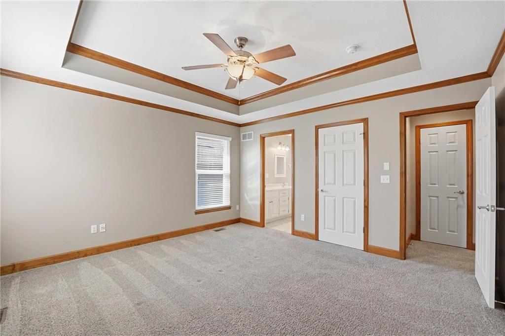 Maintenance-provided Raintree Villa in the highly sought-after Raintree Lake Neighborhood! This super clean, well-maintained home features soaring ceilings, abundant natural light, and a cozy gas fireplace. A flexible dining space offers room for two dining areas or a sitting area. Stainless steel appliances, plus washer and dryer stay. Spacious primary suite includes a walk-in closet and private bath with double vanity, separate shower, and jetted tub. Enjoy walkout access to the patio from the kitchen. A second bedroom perfect for guests. The partially finished basement offers additional living space with a full bath. Plenty of storage space. This has fantastic neighborhood amenities and low-maintenance living!