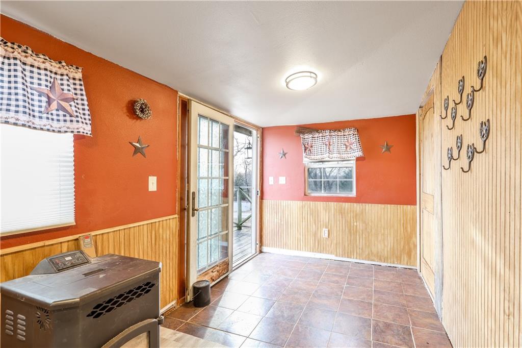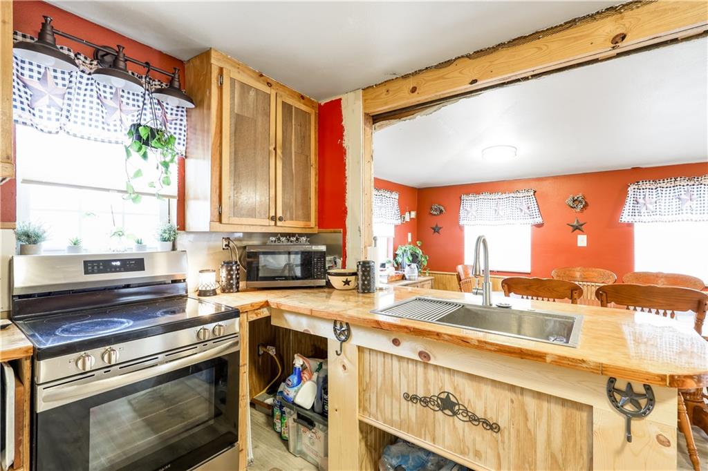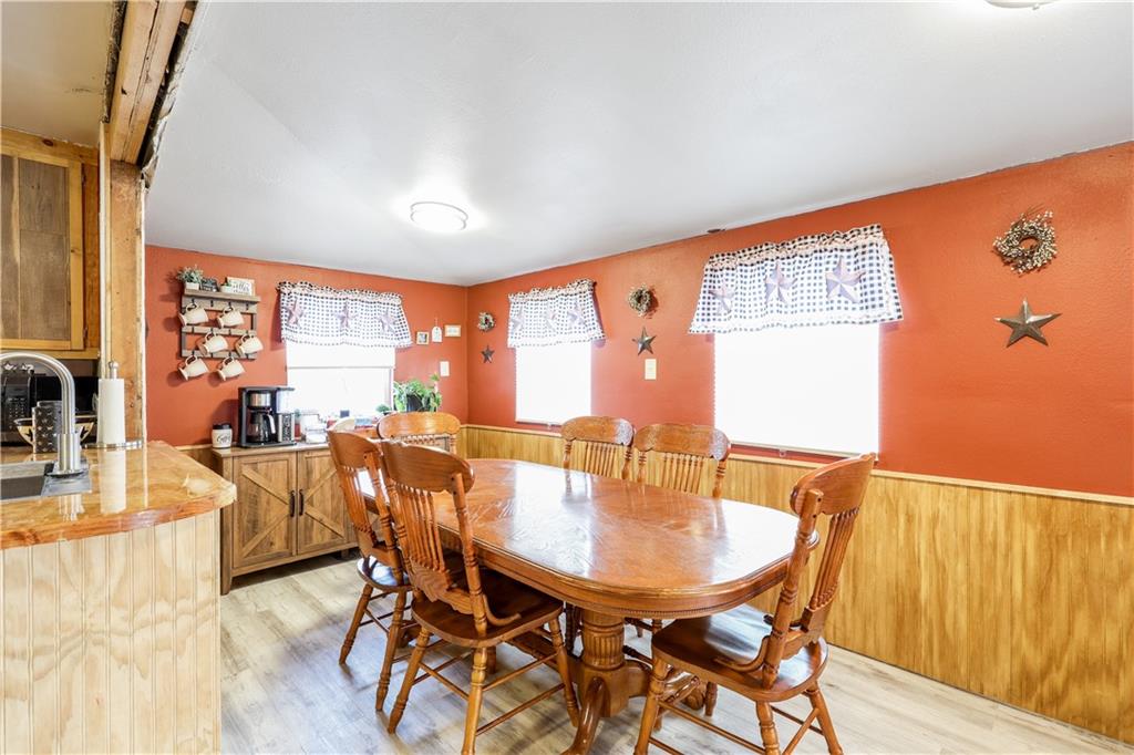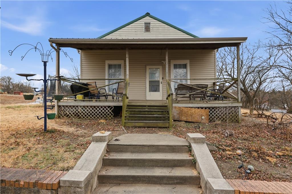 Surrounded by trees, this 1920’s bungalow farm house sits atop a hill on 2.6 acres. Rustic character is on display throughout with warm tones, wooden cabinetry and butcher block countertops, hardwood floors, and the original stone fireplace. Property features a spacious deck, covered front porch, two wood burning stoves, two outbuildings, and an unfinished basement. The home is conveniently located on the edge of town, inside city limits, but sits beautifully on small acreage, giving you a unique blend of privacy and convenience - the best of both worlds. If you've been looking for a home and a few acres at an affordable pricepoint, don't overlook this one!