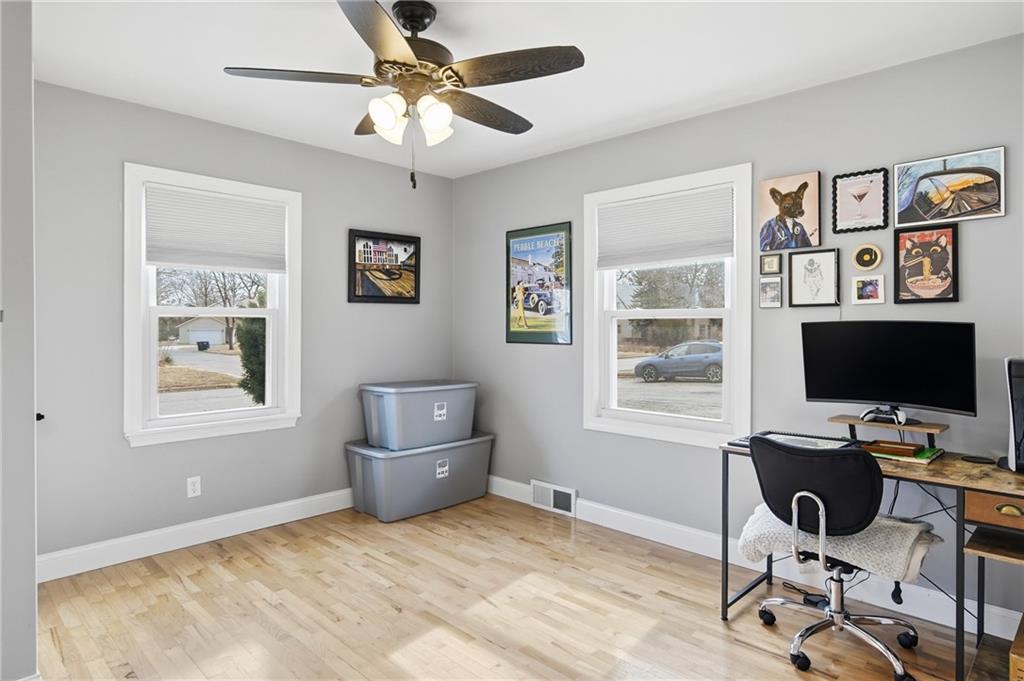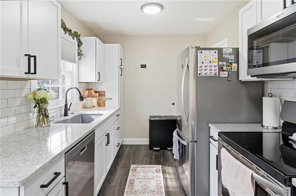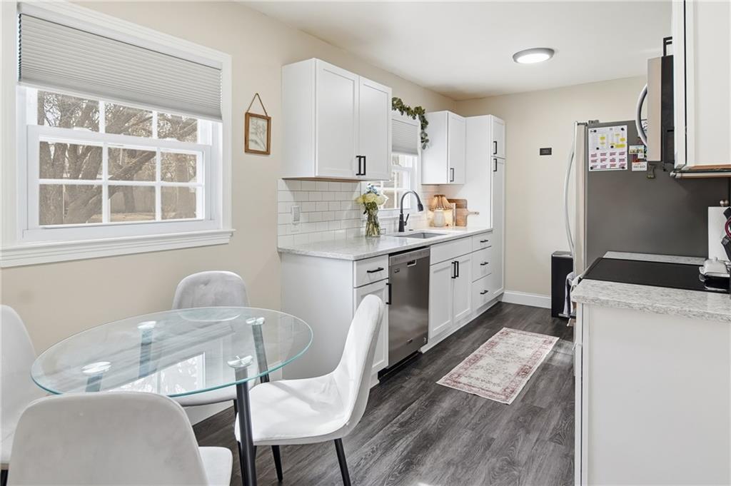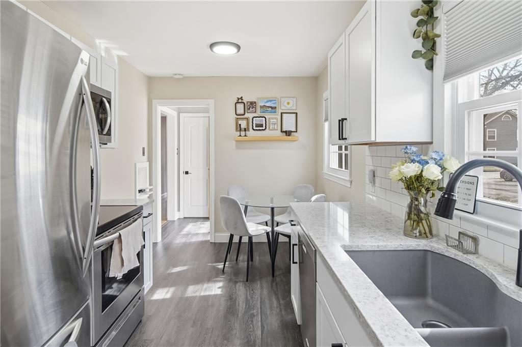 Welcome home to this well-maintained ranch-style residence ideally situated on a quiet cul-de-sac in the College Hill neighborhood. Offering comfortable single-level living with excellent additional space, this home features a functional layout, thoughtful updates, and inviting indoor and outdoor living areas. The main level includes a bright formal living room highlighted by beautiful hardwood flooring and abundant natural light. The updated eat-in kitchen features modern cabinetry, solid-surface natural stone countertops, stylish backsplash, included appliances, and durable luxury vinyl flooring extending through the kitchen, entryway, and bathrooms for both style and easy maintenance. Two main-floor bedrooms feature hardwood flooring, including a primary bedroom with a nice-sized closet and a secondary bedroom with the convenience of a private half bath ideal for guests or home office use. The full bathroom has been tastefully updated with modern finishes. A spacious screened-in porch just off the rear of the home provides an inviting space for relaxing or entertaining while enjoying fresh air protected from the elements and overlooking the backyard. The fully fenced backyard offers ample room for pets, play, gardening, or outdoor gatherings with mature trees providing shade and character. The full basement significantly expands usable space and features durable decorative epoxy flake flooring, creating a clean finished area ideal for recreation, hobbies, workout space, workshop use, or storage. Additional highlights include an attached two-car garage, vinyl exterior siding, composition architectural roof, and ample private off-street parking. Move-in ready and thoughtfully maintained, this home offers comfortable living spaces, functional updates, and versatile bonus areas both inside and out. Schedule your private showing today.