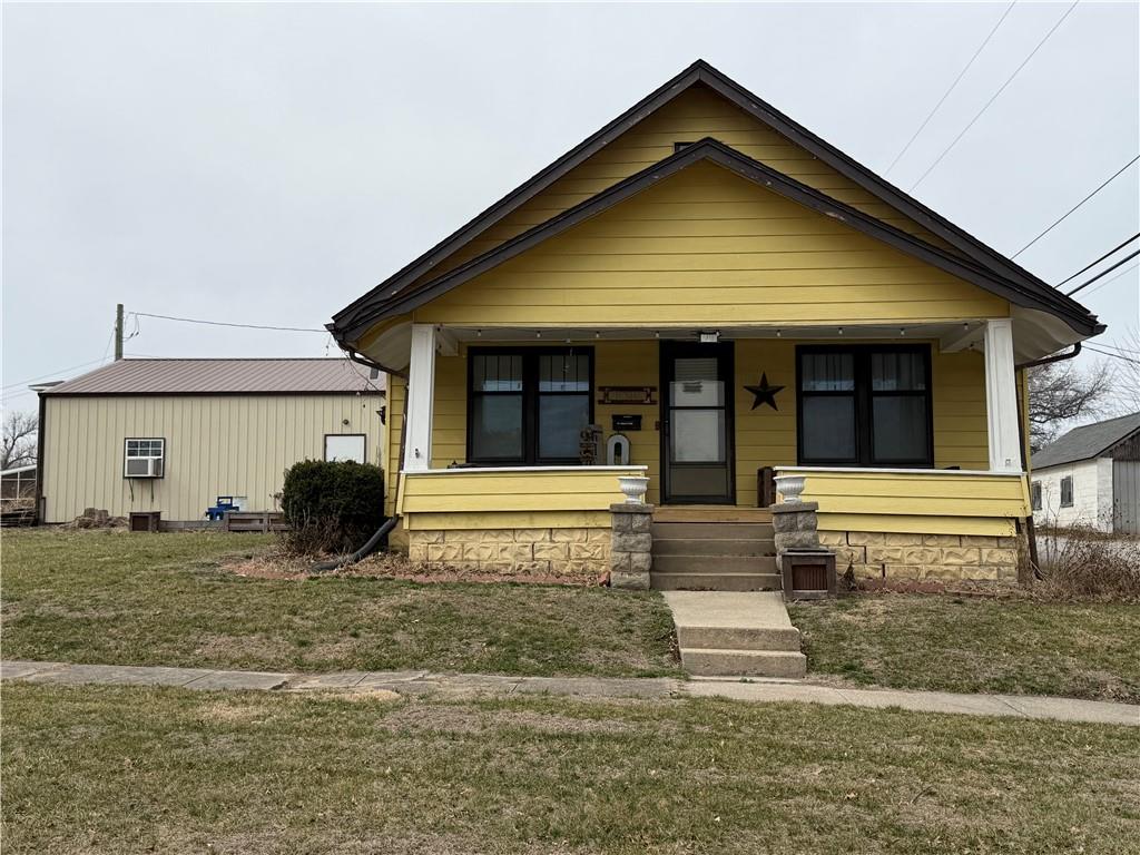 Charming story and a half on north end of Cameron on Chestnut Street! Two bedrooms and one full bathroom on main level. Third bedroom upstairs with a bonus room that could be utilized as a non-conforming bedroom or play room. Nice sized dining room that opens up to the living room. Enjoy watching tv or just relaxing next to the built in electric fireplace! The laundry room is on the main floor too, and is located just off of the kitchen in the mudroom. Outside the home you can enjoy sipping coffee on the oversized front porch or go work on a special project in the 30x30 detached garage/shop. The shop has heated concrete floors, 200 amp service, and two overhead doors. All of this on two city lots. Lots of room and plenty of potential with this craftsman style home.