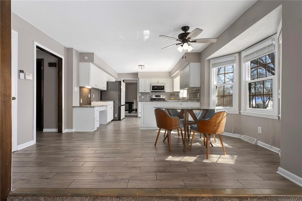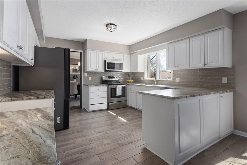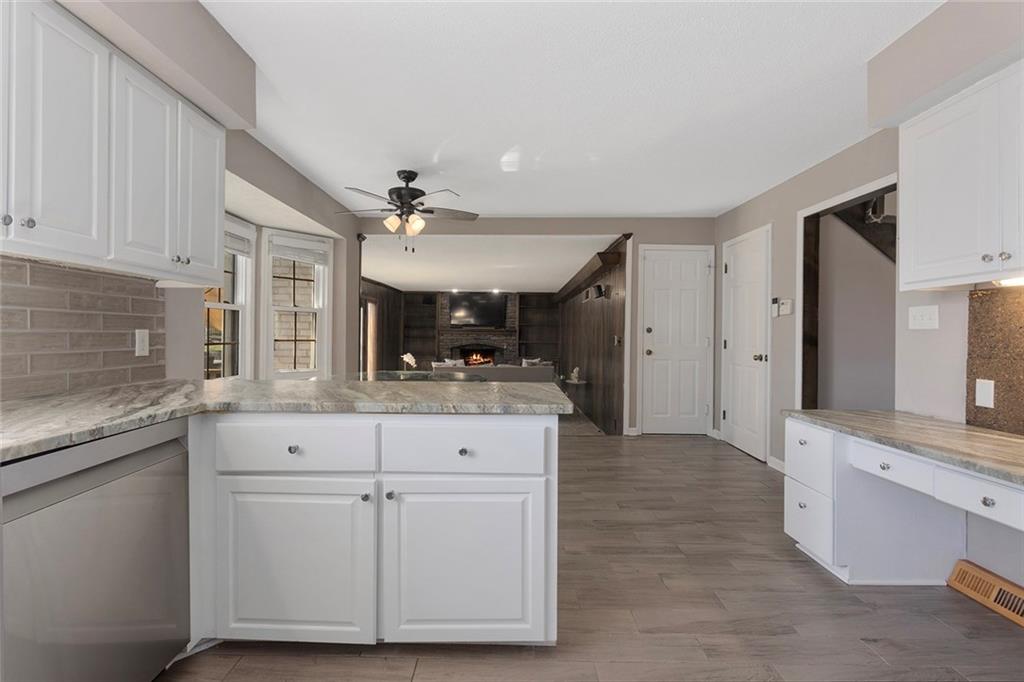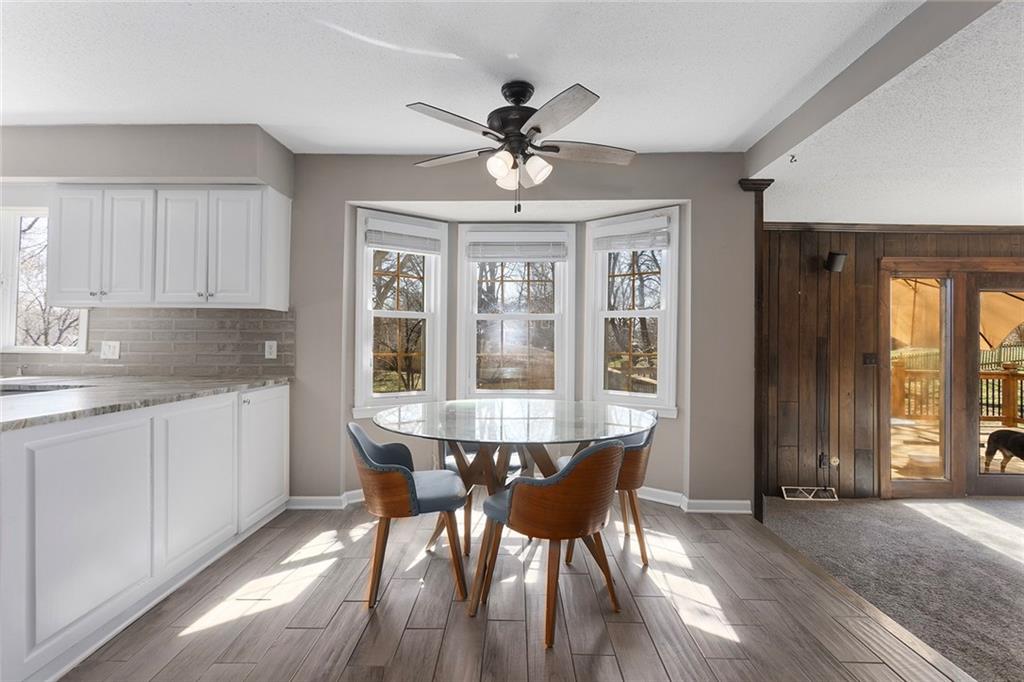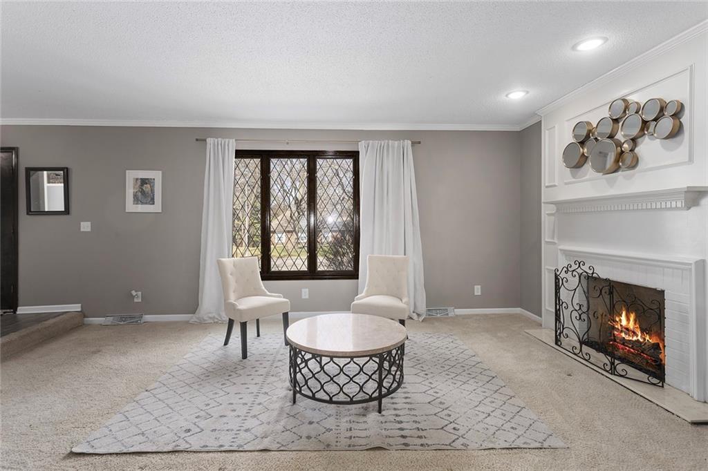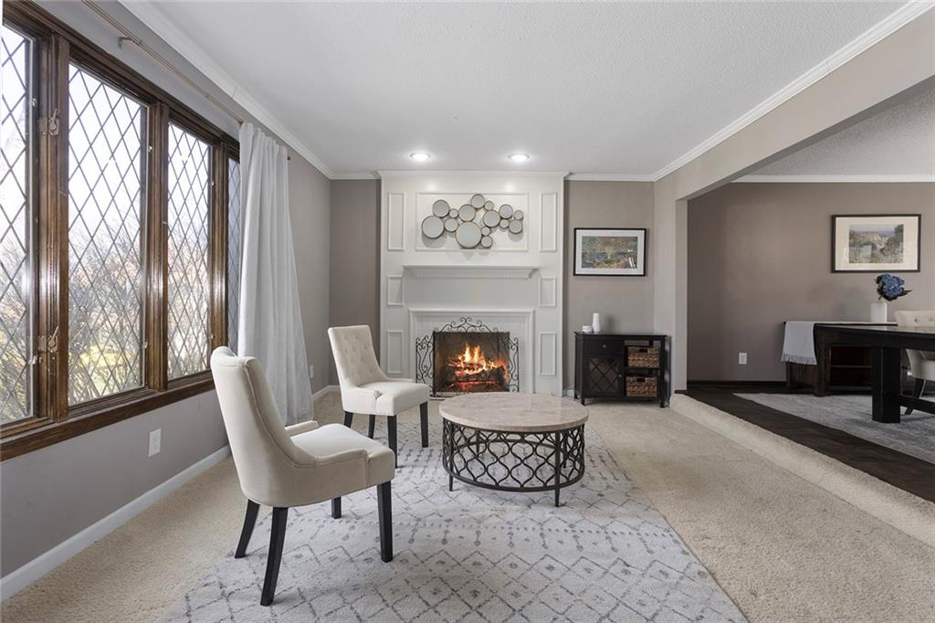 Back on the market previous contract terminated due to buyer circumstances, no fault of the sellers. Charming Tudor mid century with classic character and functional living spaces. Formal Living Room features a dramatic fireplace, abundant natural light, and crown molding. Spacious Formal Dining Room flows from the kitchen — ideal for entertaining. Hearth Room with brick fireplace and built-ins opens to a large deck overlooking the fully fenced yard. Luxury Primary Suite includes fireplace, double vanity, and generous storage. Finished walk-out basement offers a wet bar, fourth fireplace, and half bath. Located on a cul-de-sac in the coveted Staley/NKC School District in a market where homes in this region continue to hold value and see modest appreciation.
