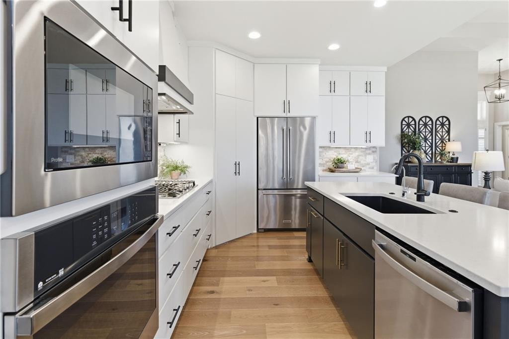 Saying this home has all the bells and whistles is an understatement! SO MANY UPDATES! And MAINTENANCE PROVIDED! No need for a shovel or a lawn mower--this home has that covered! Walk in & immediately admire the 14 foot cathedral ceiling in the great room! Stunning 5 in white oak floors, custom lighting, & plantation shutters adorn the main level living space! You'll love relaxing in front of the stone fireplace w/custom built shelves on each side! Next, venture into the gourmet kitchen with large, quartz island, gas cooktop & custom cabinets to the ceiling! 9 custom drawers under your cooktop make pot and pan storage so convenient! The walk-in pantry offers exceptional design with shelves/outlets for appliances so those are tucked out of the way! Do you love dining outdoors? You'll enjoy many nights eating dinner on your screened-in composite deck with a mount for your TV! Enjoy sitting out there admiring the huge almost 1/2 acre lot (that you don't mow!). Unwind each night in the primary bedroom with custom barn door to your primary bathroom. Huge walk-in tile shower, granite top vanity with under cabinet lighting and porcelain floors are just some of the features worth mentioning! Laundry room adjacent to your bathroom is convenience at its finest! As you go downstairs, be sure not to miss the large picture windows with custom motorized shades! Lower level welcomes you with a custom built electric fireplace surrounded by shelves. You won't even realize you're in the lower level as it boasts 11 foot ceilings and a 2ND FULL KITCHEN! Kitchen features quartz countertops, under cabinet lighting, custom cabinets, refrigerator, stove, dishwasher, microwave and WALK-IN PANTRY (And YES, you read that right! This is the lower level!) Want to grill? Head on out to your screened in patio with built-in gas grill! Wiring for a hot tub already available on this patio as well! Tons of storage! Don't miss out on this one! This immaculate home is the true definition of a GEM!