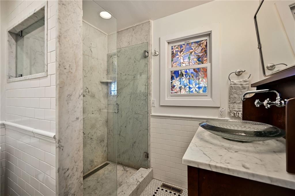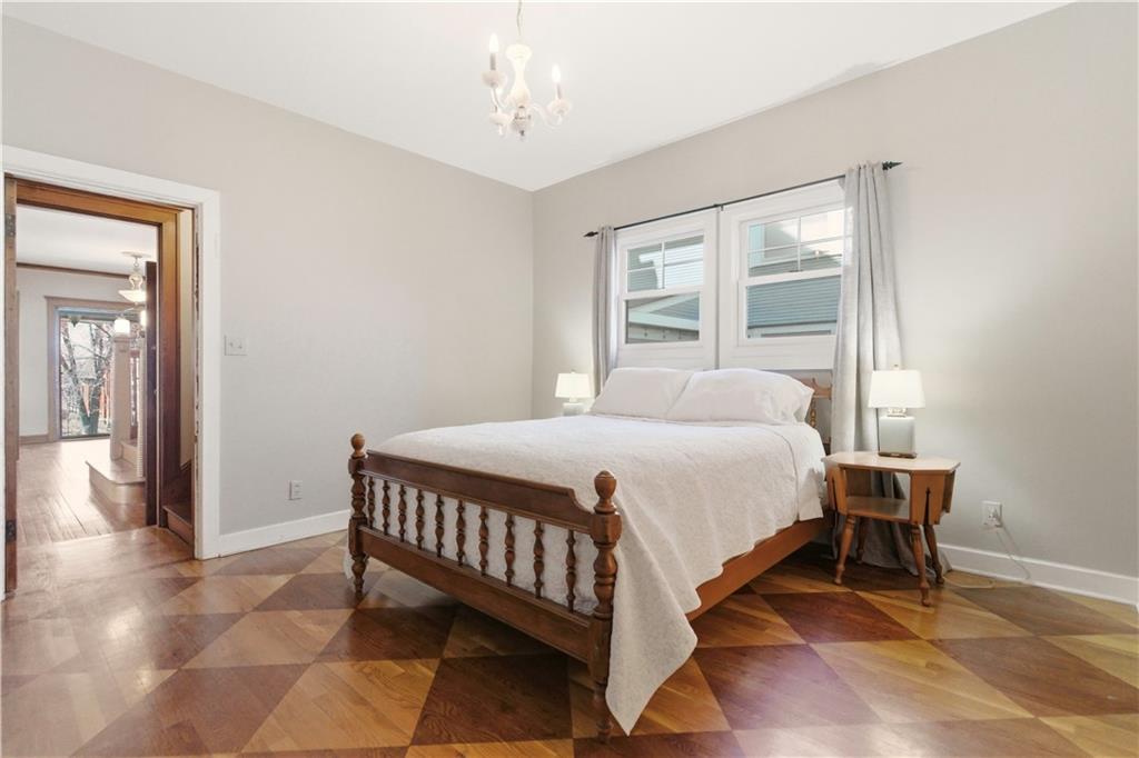 A rare opportunity in historic Hyde Park, this charming home offers 5 bedrooms and 3.5 bathrooms with timeless character and thoughtful updates throughout. Built with classic Missouri limestone shirtwaist construction, the home showcases beautifully preserved original woodwork and windows that highlight its historic craftsmanship. The main floor features two spacious living areas, including one with a cozy fireplace, along with a dining room that flows into a large kitchen complete with marble countertops and an island. A convenient main-floor primary suite with a recently renovated bathroom provides flexible living options. Upstairs, the second floor offers three generously sized bedrooms and a full bath, while the third floor boasts a massive private primary suite with a beautifully updated bathroom. Outside, enjoy the craftsman-style front porch perched high in the neighborhood—perfect for taking in stunning sunset views. A private driveway with a two-car garage adds rare convenience for the area. Ideally located just a short walk to Martini Corner, the Streetcar line, and all the vibrant amenities of Midtown living.