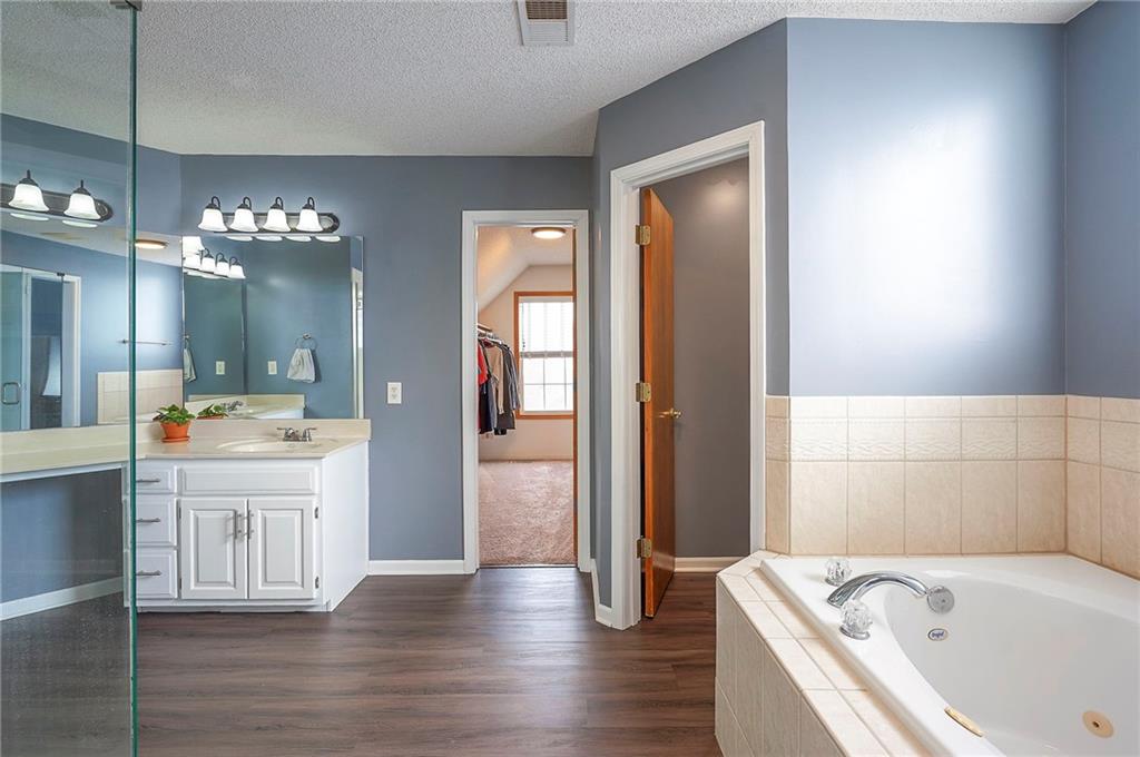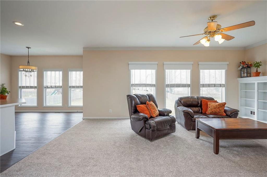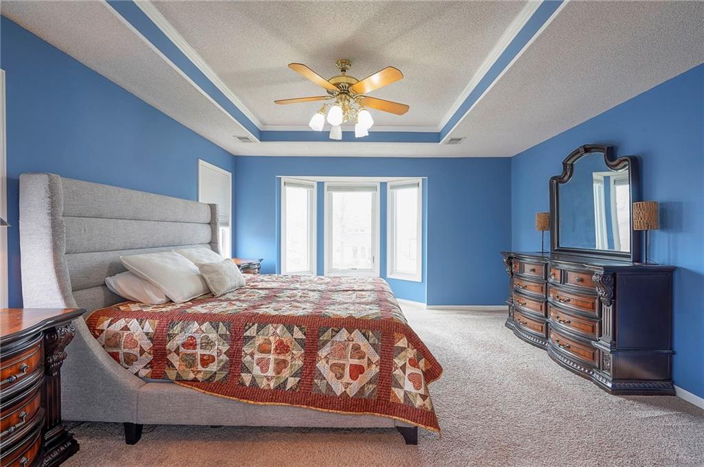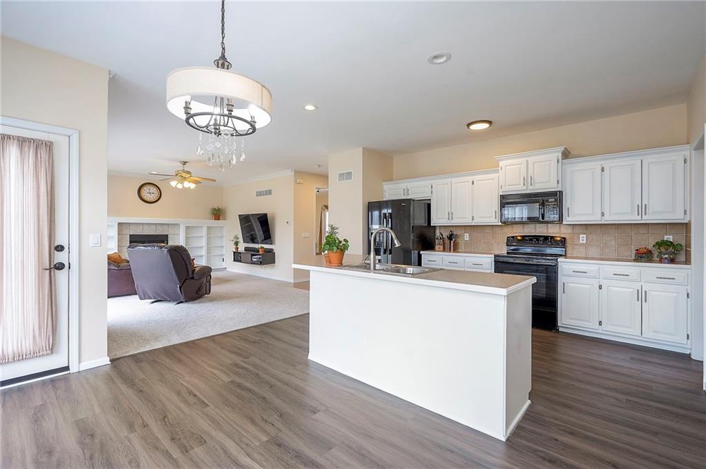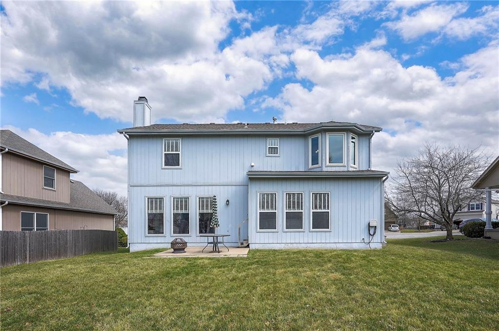 Fantastic 2-story home in a prime Olathe location, tucked away on a cul-de-sac street. Light, bright, and airy throughout with wall of windows. Front room offers flexible space for a home office, formal dining, or additional living area. You'll love the spacious family room featuring a fireplace and built-in bookshelves that flows seamlessly into the kitchen with large island, walk-in pantry, plus main level half bath. Upstairs, you’ll find a generous primary suite with an updated shower, double vanities, soaker tub, and a large walk-in closet. Two additional bedrooms, a full hall bath, and convenient bedroom-level laundry complete the second floor. The unfinished basement offers excellent storage or future finish potential. Enjoy the level backyard, 2-car garage, and fresh updates including new carpet on the main level and stairs. Olathe schools and move-in ready! OFFER DEADLINE: 10:00 a.m. Saturday, 3/28.