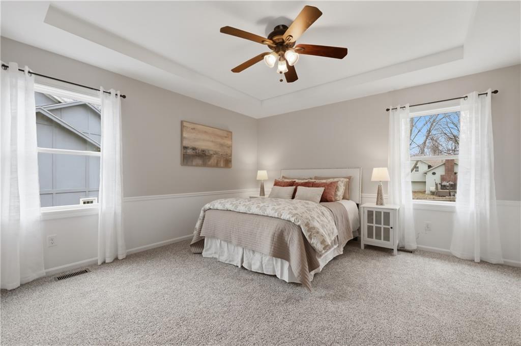 Move-in ready and beautifully refreshed, this charming home is tucked away on a quiet cul-de-sac lot in the highly rated Lee’s Summit School District with quick access to 50 Highway & I-470 for quick commuting around town and to Johnson County. Step inside to discover fresh paint throughout, brand new vinyl plank flooring and new carpeting on the main level, creating a clean and modern feel from the moment you enter. The light-filled living room features vaulted ceilings and a cozy brick fireplace, making it the perfect space to relax or entertain. Large and brand new energy-efficient thermal windows bring in abundant natural light while improving comfort and efficiency. You'll love the open & airy kitchen with an abundance of cabinetry, brand new Whirlpool stainless steel appliances and elevated quartz countertops. The primary suite and two additional bedrooms are conveniently located on the main level, while the lower level features a rec room, half bath & bonus room providing perfect set up for home office. The property exterior offers low-maintenance vinyl siding, a spacious fenced backyard ideal for pets, play, or outdoor gatherings, and an oversized two-car garage for storage & ample driveway for extra parking. With thoughtful updates already completed and a fantastic location near schools, shopping, dining, and major highways, this move-in ready home is ready for its next chapter. Come create your own story! Room dimensions depicted on photos are from photographers software. Buyers and their agents to independently verify data.