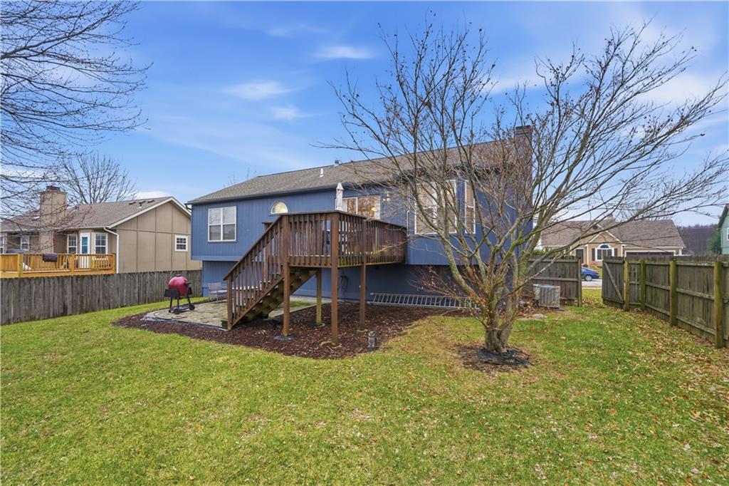 Cozy split level turnkey home that you won't want to miss. Entering the home you'll be greeted with a large, wide staircase leading to the main living area, Once upstairs you'll find a bright living room large enough for sectional seating. The kitchen and eat in dining room is the perfect place for meals or entertaining, Completing the main level are the three bedrooms and full bath. The lower level living area has a second large living space. This area has ample room to section off a small office or use as a 4th Bedroom. The spacious backyard is the perfect place for outdoor entertaining. It includes a deck and patio area for firepits, grills and seating. Schedule your showing now to view this move in ready home situated just minutes from 50 highway and a short drive to the Downtown Lee's Summit area.