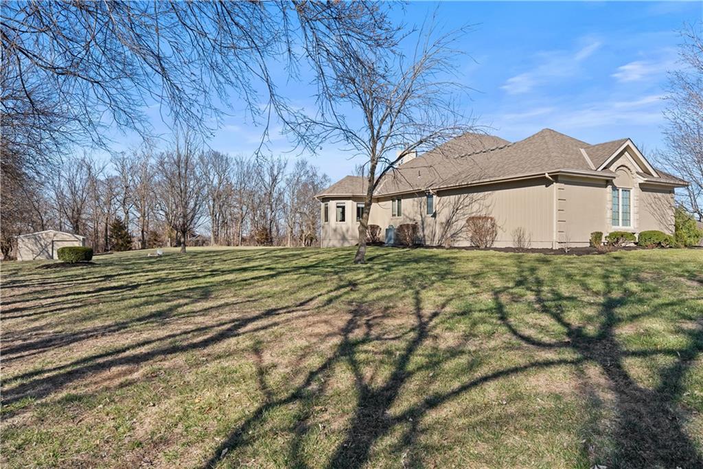 Nestled on approximately 2.2 acres in the sought after Easley Estates community of Lee’s Summit, this ranch home offers the space of country living while keeping everyday conveniences just minutes away. From the moment you arrive, the setting alone makes an impression with wide open views. Inside, the main level is thoughtfully designed for comfortable living and easy entertaining. All three bedrooms are conveniently located on the main floor. The home features an abundance of windows that bring in natural light and peaceful views of the surrounding acreage. The layout includes a dedicated home office, formal dining room, sunken living room, and an eat in kitchen featuring an abundance of cabinetry for storage and functionality. A main level laundry room adds everyday convenience. Take a moment to step outside and enjoy the lanai and the views that it offers. Wildlife, a morning coffee or an afternoon spent enjoying a new book, this will quickly become one of your favorite parts of the home. The lower level offers excellent flexibility. A fully finished room with a closet provides the perfect option for a fourth non conforming bedroom, workout room, playroom, or private guest space. The remainder of the basement has been lightly finished and is ready for the next owner to add their personal finishing touches and expand the living space even further. Step outside and enjoy the wide open backyard, complete with a storage shed for tools and equipment. The garage has been upgraded with durable epoxy flooring, adding both function and polish. Easley Estates is loved for its peaceful, acreage style living while still being incredibly convenient. Easy highway access makes commuting simple, and everyday essentials like grocery stores, restaurants, the library, and the hospital are all just minutes away. A rare opportunity to enjoy space, comfort, and location all in one property.