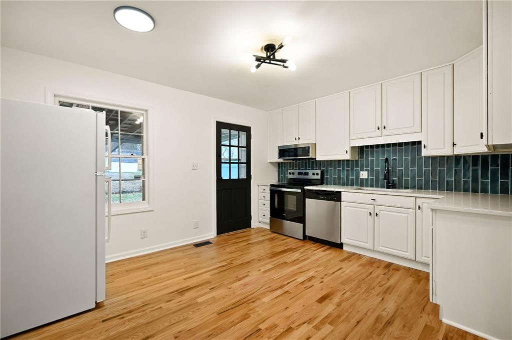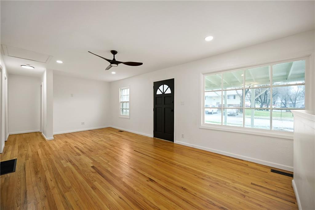 This beautifully updated ranch-style home offers an open-concept main living space and an impressive list of updates from head to toe. The main level features refinished hardwood floors, fresh interior paint, and updated light fixtures throughout, creating a bright and welcoming atmosphere. The layout includes two full bedrooms and two full bathrooms on the main level, making it both functional and comfortable. The primary suite features a generously sized closet and a fully updated bathroom with a tiled shower and bathtub, new LVP flooring, updated vanity, and modern hardware. The hall bathroom has also been completely updated with a beautifully tiled shower and stylish finishes. The kitchen has been thoughtfully refreshed with new granite countertops, a tiled backsplash, updated hardware, stainless steel appliances, and a new faucet—perfect for both everyday living and entertaining. The finished basement adds incredible additional living space, including a third bedroom and a fully updated bathroom featuring a tiled shower and updated finishes. There is also a fourth non-conforming bedroom, along with plenty of additional room for storage. Brand-new carpet has been installed throughout the basement. Outside, the property offers excellent parking and outdoor amenities, including a one-car attached garage and an additional carport. Enjoy relaxing on the covered rear porch, graciously sized corner lot, and take advantage of the fully enclosed shed, perfect for yard tools, gardening equipment, or additional storage. With its thoughtful updates, flexible living spaces, and fantastic features throughout, this home truly is a must-see.