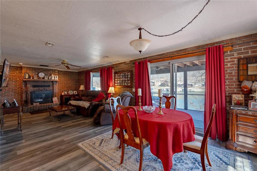 Nestled at the 8 MM in Buck Creek Cove, this lakefront retreat offers the best of both worlds—big protected cove and year-round water. If you’ve been waiting for that “this is the one” feeling, this might be it. This beautiful all brick home with detached 2 car garage has been thoughtfully updated with major improvements you’ll truly appreciate. The main level features brand-new LVP flooring and new windows that fill the space with natural light while boosting energy efficiency. Central heating and cooling have been added for year-round comfort, making lake living easy in every season. Both bathrooms have been completely remodeled with fresh, modern finishes. In the kitchen, you’ll find a new dishwasher & garbage disposal, ready for entertaining after long days on the water. The big-ticket items? Already handled. Updates include a new pressure tank on the well, new septic pump, aerator, and laterals, plus a new shallow well pump on the dock—giving you peace of mind so you can focus on enjoying the lake. Relax outside on the screened in patio or step down to the dock for all your summer fun. Just a short boat ride away from Shady Gators, Tap & Grill & Franky & Louies