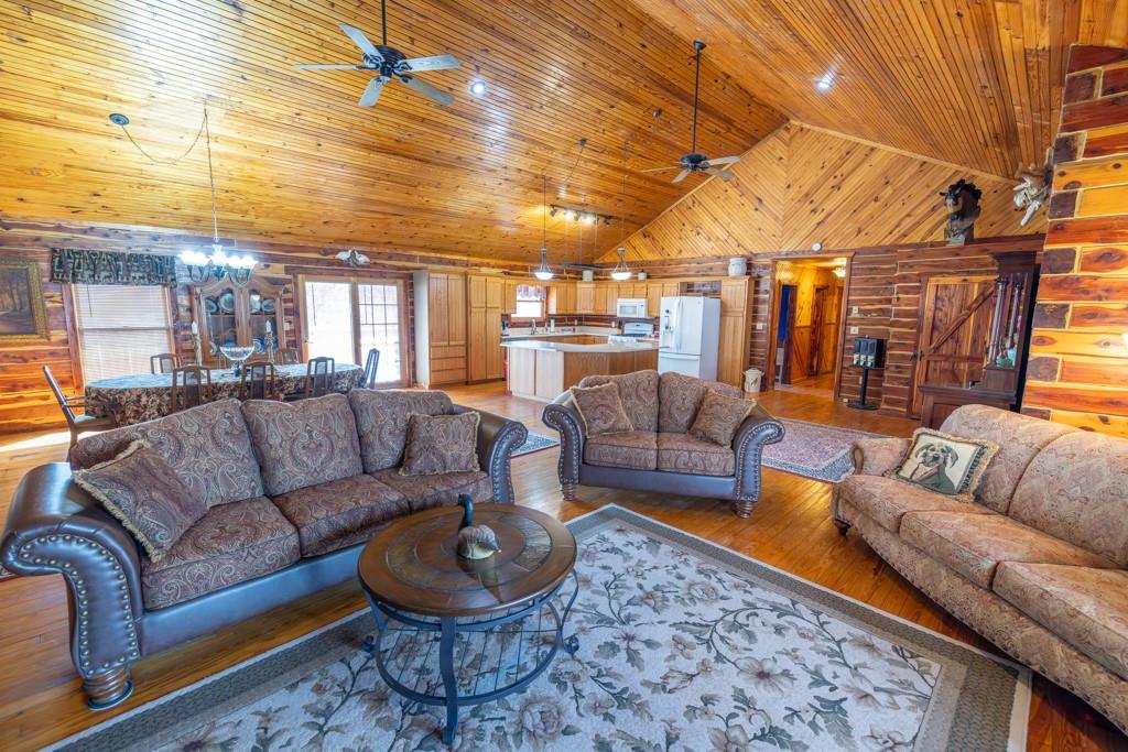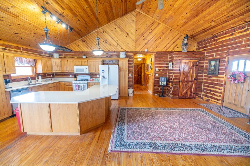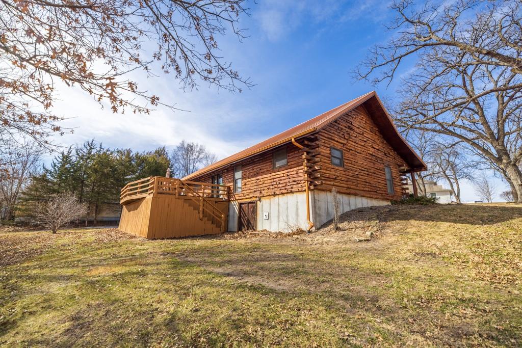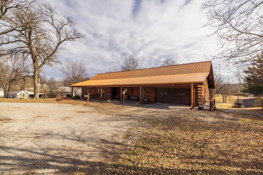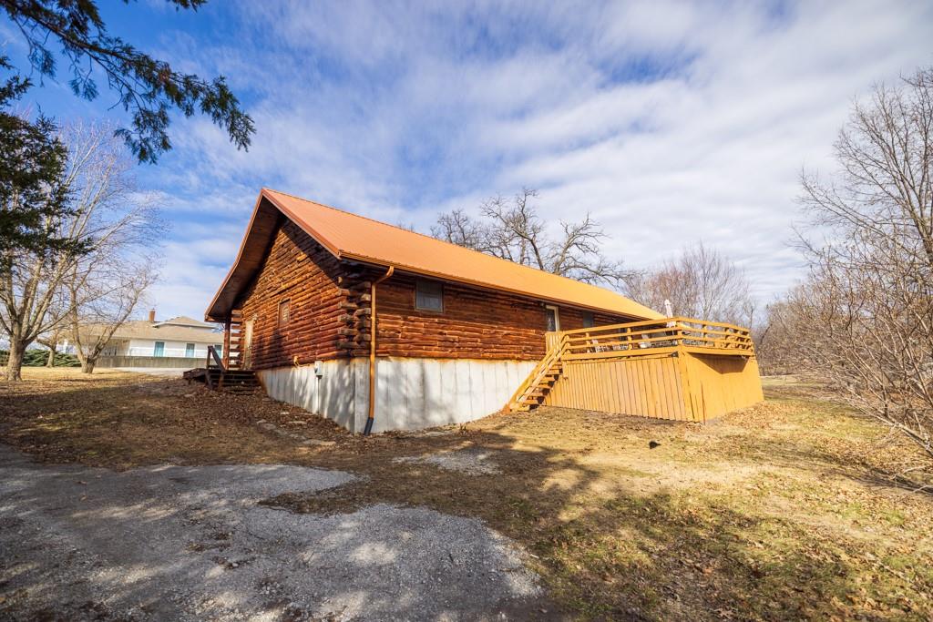 Log Home on 1 Acre Corner Lot This home combines rustic charm and modern convenience all in one. With true log walls and other natural accents, this home radiates a warm county feel right in the heart of town. With 3 bedrooms and 1 ½ bath, vaulted ceiling in the large open concept living room and kitchen, space for comfortable living and entertaining is abundant. The kitchen features custom oak cabinets and quartz countertops. The custom doors throughout the home and the large tile shower enhance the appeal of this incredible home. In addition to the 1920 square feet main level, there is a full unfinished basement, attached garage, full length front porch, and large back deck. The home has undergone numerous improvements in the last several months. The new copper metal roof and guttering, complete resealing of the logs, and new water heater are just a few of the items enhanced. All situated on a 1.03-acre corner lot that includes nice trees and a storage shed, this property has many amazing features.