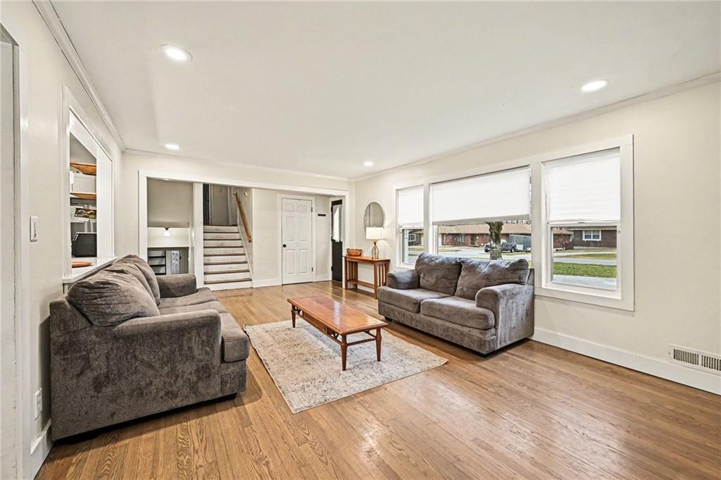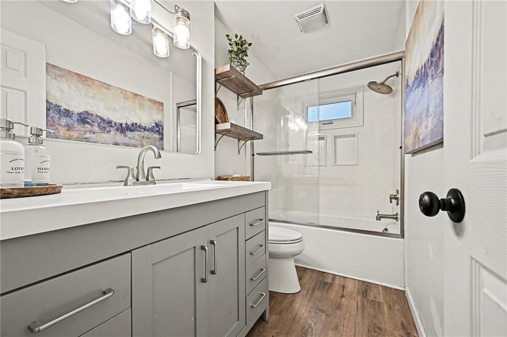 OPEN Saturday, noon to 2pm, Sunday 1-3pm. EVERYTHING NEW!! Spacious layout • Updated interior • Large deck + oversized shed • Expanded parking Almost everything with this home has been updated within the last three years. New roof, new HVAC, new new new. One of the larger homes in the neighborhood. Interior features include hardwood flooring in select areas, updated finishes, and a spacious kitchen with generous cabinet and counter space. Open living and dining areas provide flexible layout options for gatherings, work-from-home needs, or multi-use rooms. Everything has been refreshed, offering move-in ready convenience. The kitchen connects directly to the backyard deck, creating easy indoor-outdoor flow. Exterior features include a large deck overlooking the yard and an oversized storage shed suitable for tools, equipment, or hobby space. Circular driveway and additional parking space accommodate multiple vehicles. Backyard offers open space for recreation, gardening, or entertaining. Functional layout, recent updates, ample parking, and outdoor storage make this property a stand-out in the neighborhood.
