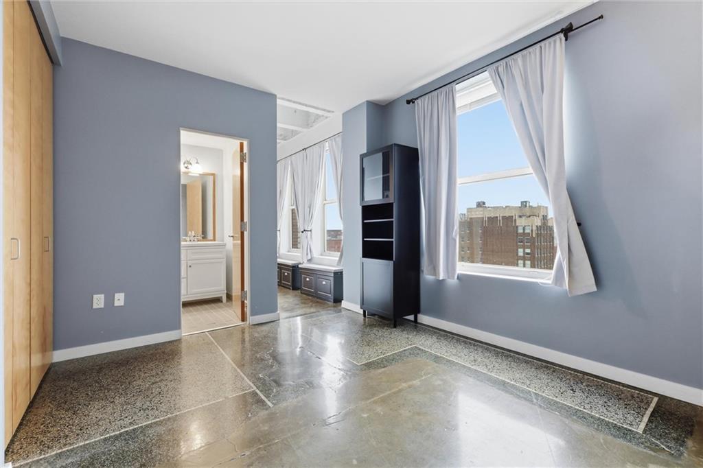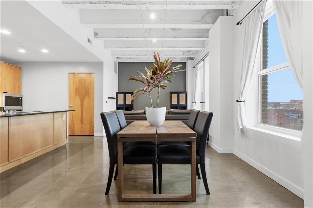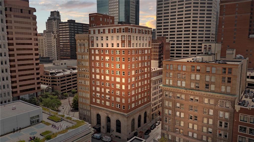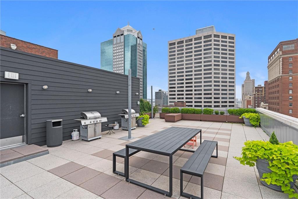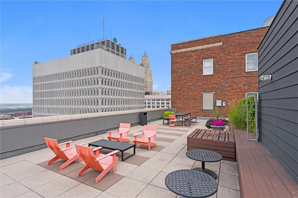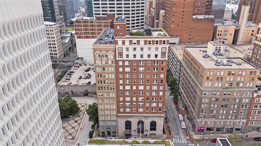 Experience the ultimate urban lifestyle with this rare opportunity to reside in a stunning condo within the historic Library District. Housed in the prestigious former New England National Bank Building, this exclusive 53-unit boutique residence is perfectly situated just one block from the streetcar line. This expansive one-bedroom, 1.5-bathroom home offers breathtaking northbound views, with oversized windows that flood the interior with an abundance of natural light. The sophisticated design features polished concrete floors, fresh interior paint, and soaring 10-foot ceilings, creating a serene urban oasis that ensures quiet and peaceful living. The modern kitchen is a chef’s delight, equipped with sleek wood cabinetry, granite countertops, and a massive center island. This culinary space flows seamlessly into a flexible, open-concept living area that accommodates endless configurations for entertaining or a dedicated home office, complemented by a convenient pantry with a full-sized washer and dryer. Residents enjoy access to a spectacular 360-degree rooftop terrace featuring panoramic vistas stretching from the downtown airport to Liberty Memorial. Your monthly dues include one secure parking space in the library garage, with options to lease additional spots as needed. Whether you are looking for a primary residence or a stylish pied-à-terre for the World Cup, you will be steps away from the city's premier attractions, including the Kauffman Center, T-Mobile Center, the vibrant River Market, Current Landing, and the Crossroads Art District. Some of the city’s best restaurants are within walking distance. The streetcar also provides easy transit south to the Country Club Plaza. There has truly never been a better time to call downtown Kansas City home.