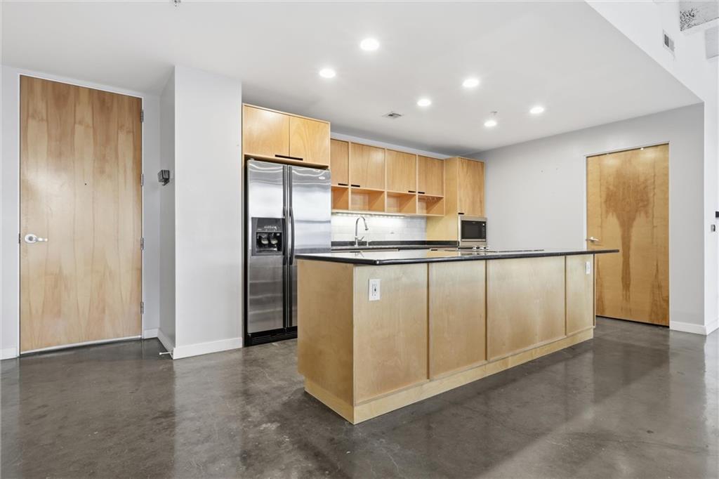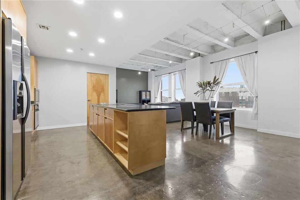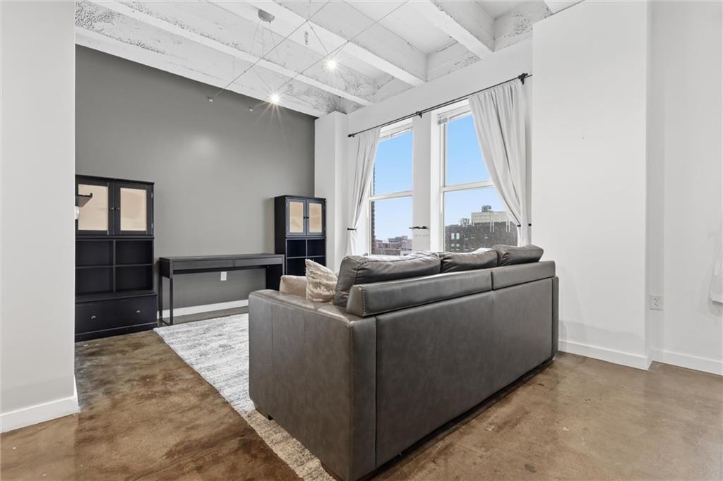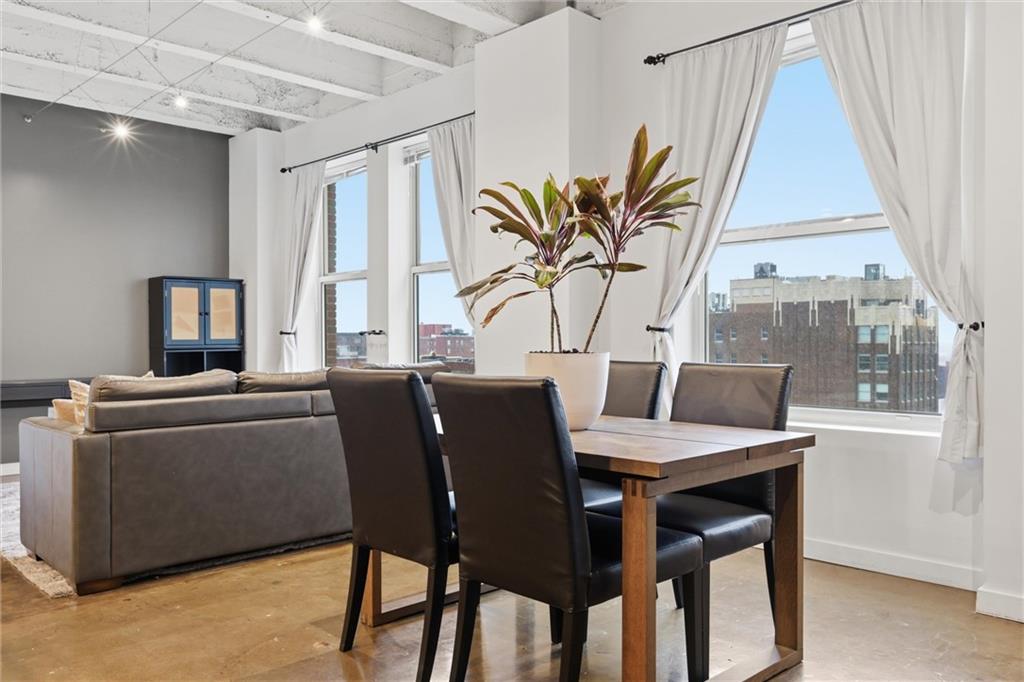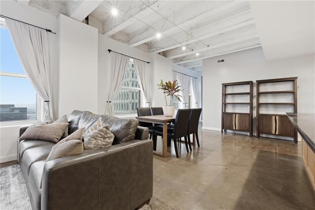 Experience the ultimate urban lifestyle with this rare opportunity to reside in a stunning condo within the historic Library District. Housed in the prestigious former New England National Bank Building, this exclusive 53-unit boutique residence is perfectly situated just one block from the streetcar line. This expansive one-bedroom, 1.5-bathroom home offers breathtaking northbound views, with oversized windows that flood the interior with an abundance of natural light. The sophisticated design features polished concrete floors, fresh interior paint, and soaring 10-foot ceilings, creating a serene urban oasis that ensures quiet and peaceful living. The modern kitchen is a chef’s delight, equipped with sleek wood cabinetry, granite countertops, and a massive center island. This culinary space flows seamlessly into a flexible, open-concept living area that accommodates endless configurations for entertaining or a dedicated home office, complemented by a convenient pantry with a full-sized washer and dryer. Residents enjoy access to a spectacular 360-degree rooftop terrace featuring panoramic vistas stretching from the downtown airport to Liberty Memorial. Your monthly dues include one secure parking space in the library garage, with options to lease additional spots as needed. Whether you are looking for a primary residence or a stylish pied-à-terre for the World Cup, you will be steps away from the city's premier attractions, including the Kauffman Center, T-Mobile Center, the vibrant River Market, Current Landing, and the Crossroads Art District. Some of the city’s best restaurants are within walking distance. The streetcar also provides easy transit south to the Country Club Plaza. There has truly never been a better time to call downtown Kansas City home.