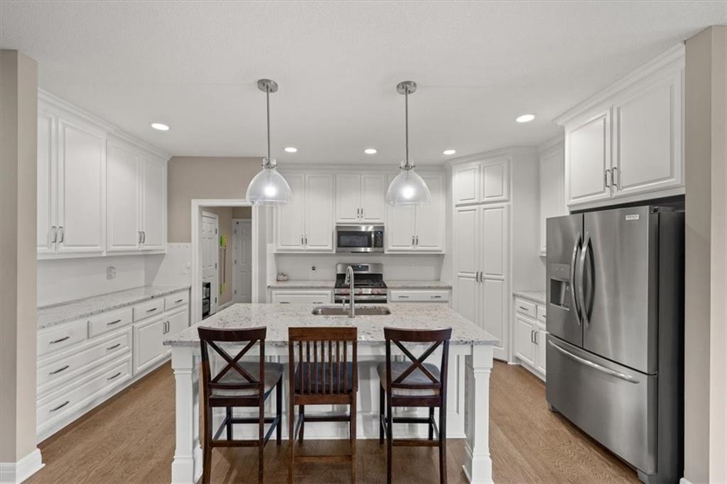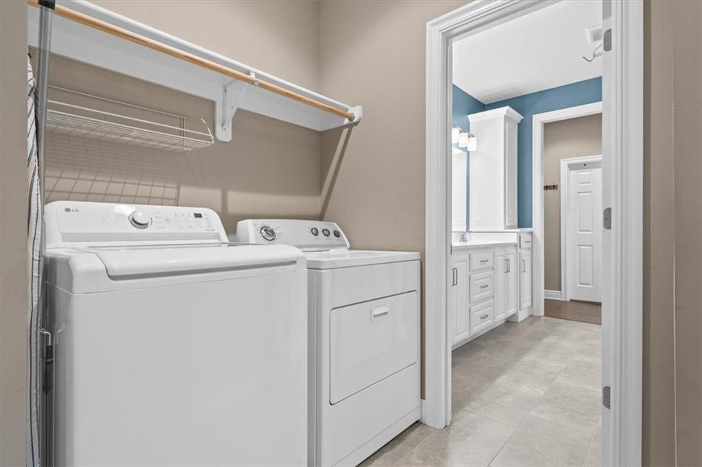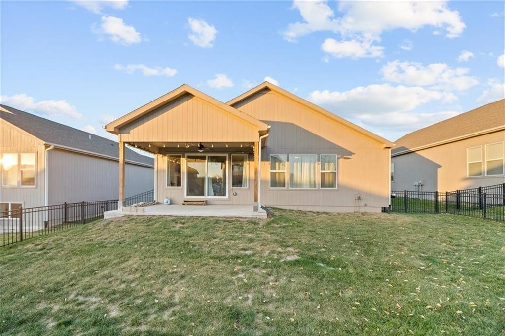 Upgrades galore in southwest Olathe. Zero-entry (no steps!) "Owner's Entry" from the garage and expanded zero-entry shower in the primary bathroom makes one level living an ease. Upgrades include: granite in the kitchen & quartz in the bathrooms, gas range, high efficiency furnace w/ humidifier, irrigation system, ethernet in all bedrooms, NO CARPET (except steps to basement), smart garage door opener, radon mitigation system, plus ALL appliances stay with the home! Truly move in ready! Fully fenced, low maintenance yard and covered patio (with ceiling fan!) complete the space. Add equity with a basement finish; 1,700sqft ready for your finishings! Full egress window & bathroom stubs will allow for a bedroom, bathroom, and flex spaces! Outdoor enthusiasts will enjoy nearby Lake Olathe Recreation Park with marina, beach, extensive activity trails and lake access for multiple water activities. NO HOA! Newest OSD high school, Olathe West!