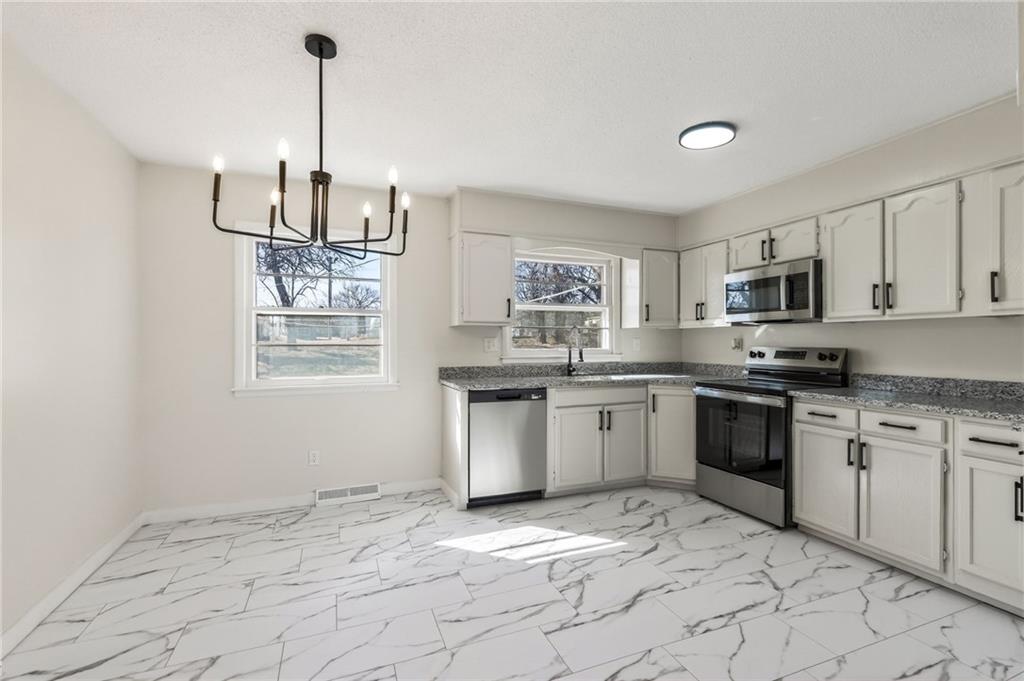 Welcome to this beautifully renovated and move-in-ready ranch home! Step inside to find a bright, modern space with fresh paint and new flooring throughout. The completely updated kitchen features a stunning marble-look tile floor, granite countertops and stainless steel appliances. The foundation was recently repaired and is warrantied for your peace of mind. Downstairs, the new partially finished basement offers a versatile bonus space perfect for a family room, home gym, or entertainment area. Don't miss out on this incredible opportunity!