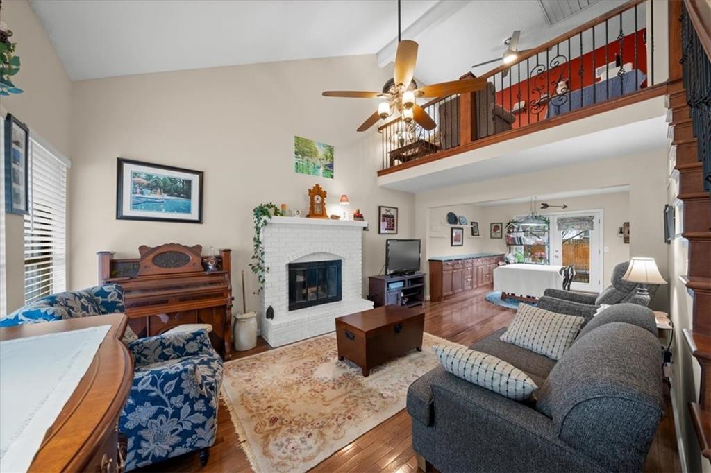 Coming soon! Beautiful 2 bed/2.5 bath home with hardwood floors, vaulted ceiling, finished basement, and privacy fenced backyard on a quiet cul-de-sac in Overland Park! Main floor features a living room with a fireplace, formal dining room with sliding glass doors that open to the back patio, a spacious kitchen and a half bath. Dining room has TONS of built-in storage with granite countertops that match the kitchen. Upstairs has both bedrooms and a bonus loft area that makes a great home office or craft room. Finished basement provides extra living space. This home has been well-maintained, is super clean and tidy, and ready for a new owner!