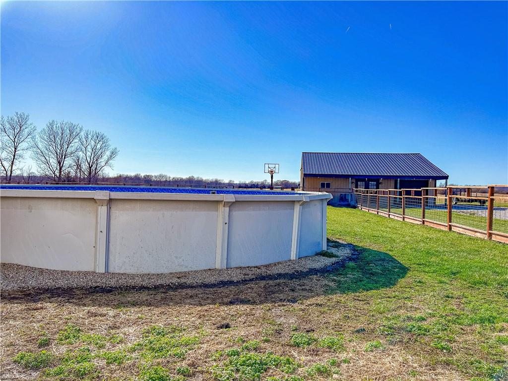 Nestled on 10 picturesque acres just outside of LaCygne, KS, this remarkably well-maintained 3-bedroom, 2-bath home offers the perfect blend of peaceful country living and commuter convenience with easy access to 69 Highway. From the moment you arrive, the picture-perfect exterior sets the tone for what awaits inside. Step into a warm and inviting living room where a stunning fireplace serves as the space's beautiful focal point. The kitchen is designed with functionality in mind, offering abundant cabinetry and storage for all your needs. The spacious primary suite provides a true retreat, complete with a walk-in closet and a brand-new Onyx walk-in shower. The full unfinished basement with a walkout door offers endless possibilities, ideal for additional living space, storage, a workshop, or future expansion. Out back, this property continues to impress with an above-ground pool, hot tub, and deck designed for entertaining and relaxation. Just beyond the fenced yard, you'll find a detached garage with RV hookups, perfect for hobbyists, travelers, or extra storage. If you’ve been dreaming of space, privacy, and move-in-ready comfort, this LaCygne property is one you won’t want to miss.