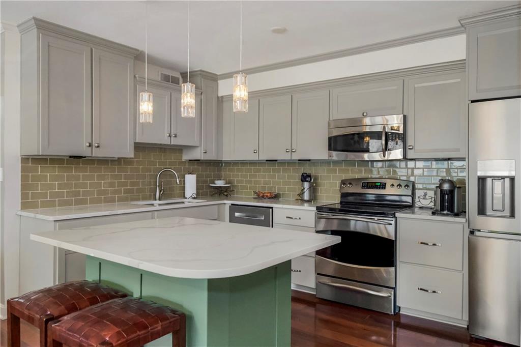 Absolutely stunning South facing unit offers open fl plan with beautiful cherry floors. well-designed open kitchen with quartz countertops, center island and stainless appliances, under cabinet lighting and electric outlets for sleek backsplash, Walk in pantry, cabinet roll outs, soft close drawers, windows & sliding door leads to large treed balcony with Hunter Douglas blinds to allow light and privacy. beautiful built in's living rm, french doors from liv to bedroom/dining room w/enormous wall of closets, walk-in closet in primary bedroom, large walk-in shower in primary bath,. Laundry room, party room and exercise room in common areas. leisurely walk to Plaza, Loose Park, entertainment, restaurants and more. **BEST PRICE PER SQUARE FOOT ON THE PLAZA. HOA TOTAL OF $1928 INCLUDES ALL PROPERTY TAXES, WATER, HEAT AND A/C!!! AS WELL AS THE IN DOOR HEATED $100 PARKING FEE **