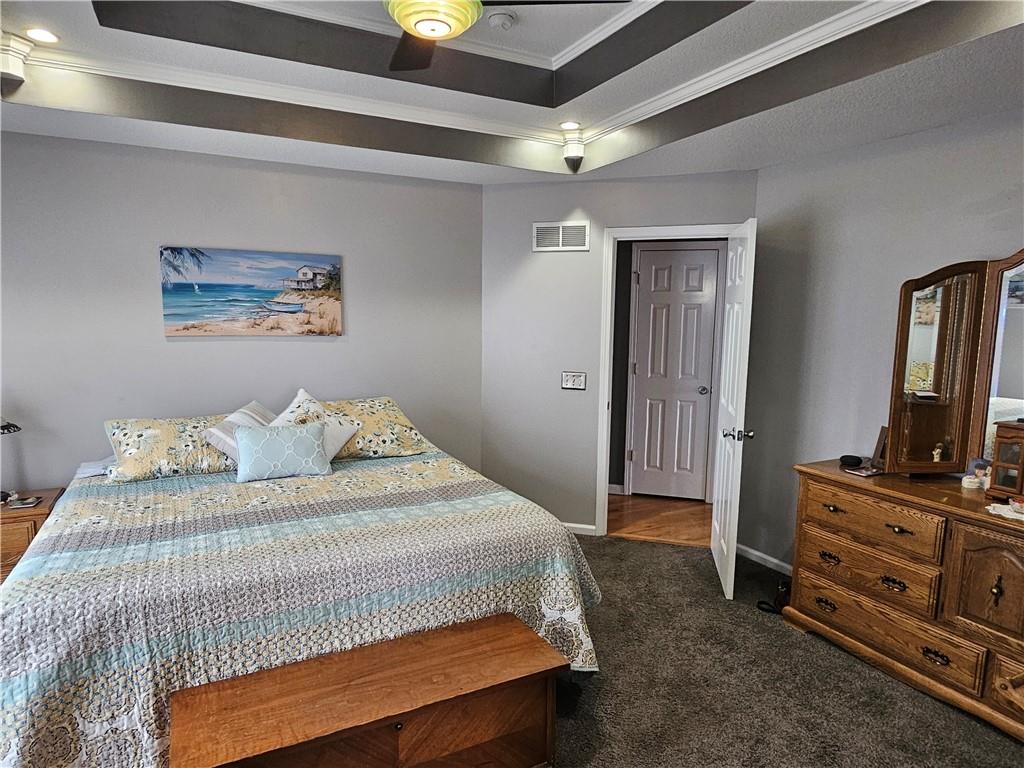 This beautifully maintained reverse ranch is located in the desirable Harborview subdivision. The home features hardwood floors on the main and new carpeting on the lower level, creating a warm and inviting atmosphere with a seamless design flow. The finished walkout basement includes two spacious bedrooms, a full bathroom, and a generously sized storage room. An oversized deck overlooks the fenced backyard, providing an ideal space for outdoor activities. Additionally, the kitchen appliances are only six months old.