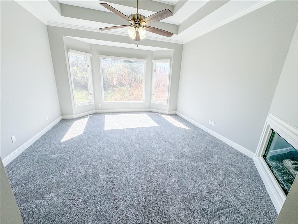 Beautiful 4-bedroom, 3.1-bath Reverse 1.5 Story home offering space, style, and incredible views. The open-concept kitchen features stainless steel appliances, ample cabinetry, and flows seamlessly into the main living area—perfect for entertaining. Large windows fill the home with natural light and showcase peaceful pond views from the spacious deck. The primary ensuite is a true retreat, complete with two walk-in closets, a cozy fireplace, and a luxurious spa-like bath featuring dual shower heads, a soaking tub, and bright, elegant lighting. The finished lower level is designed for both relaxation and entertaining with a bar area, fireplace, 3 additional bedrooms, versatile recreation room, and a suspended garage space ideal a for a home office, gym, or media space. Energy efficiency is a standout feature with 39 solar panels installed on the roof, helping reduce utility costs while supporting sustainable living. This exceptional home combines comfort, efficiency, and beautiful water views—an opportunity you won’t want to miss.